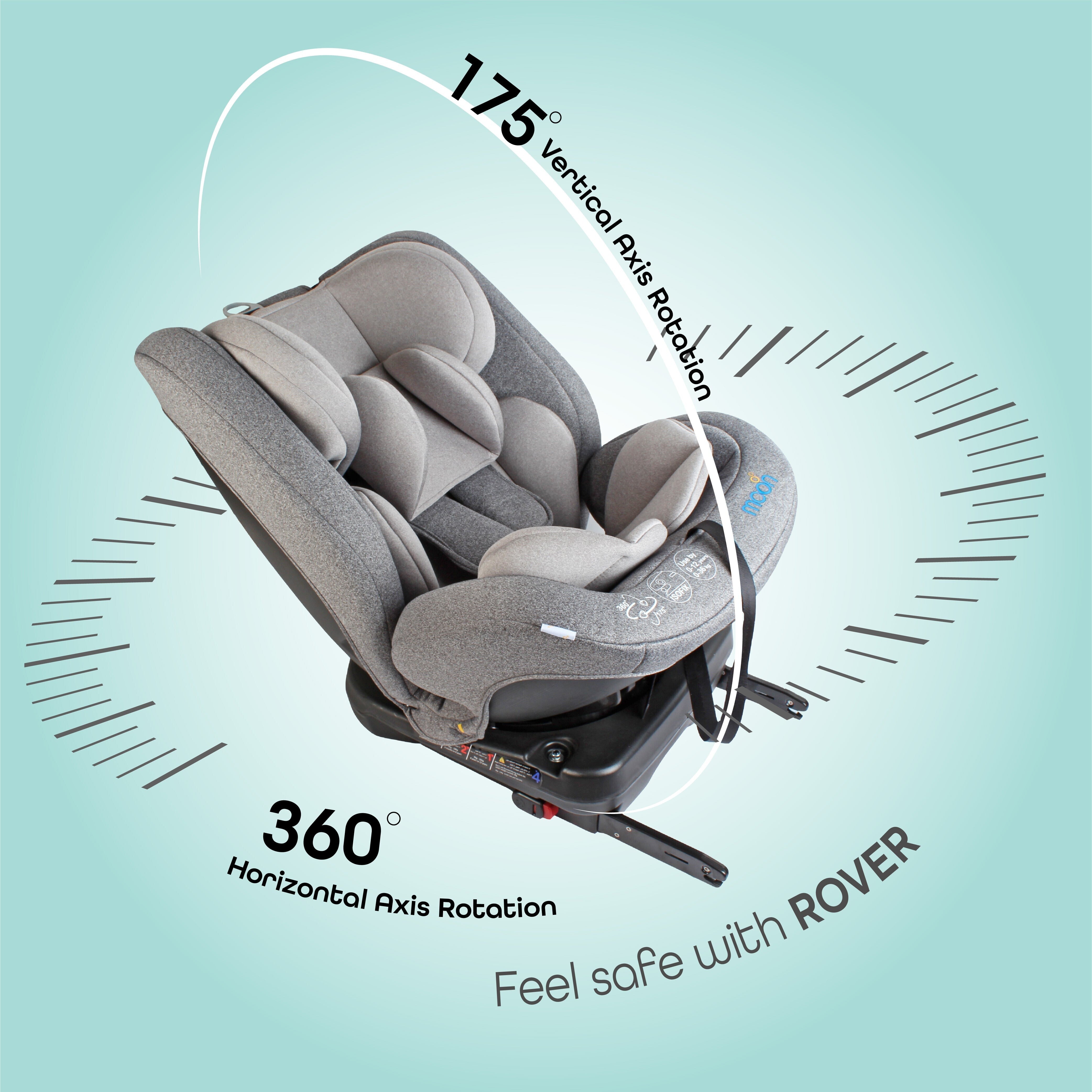 - Premium-Quality Build: Made up to the highest standards, the MOON Rover car seat for infants and toddlers is EN Certified. Its 4 recline positions (3 forward-facing and 1 rear-facing) helps keep your child comfy. The baby is secured using the seat belts already in the car