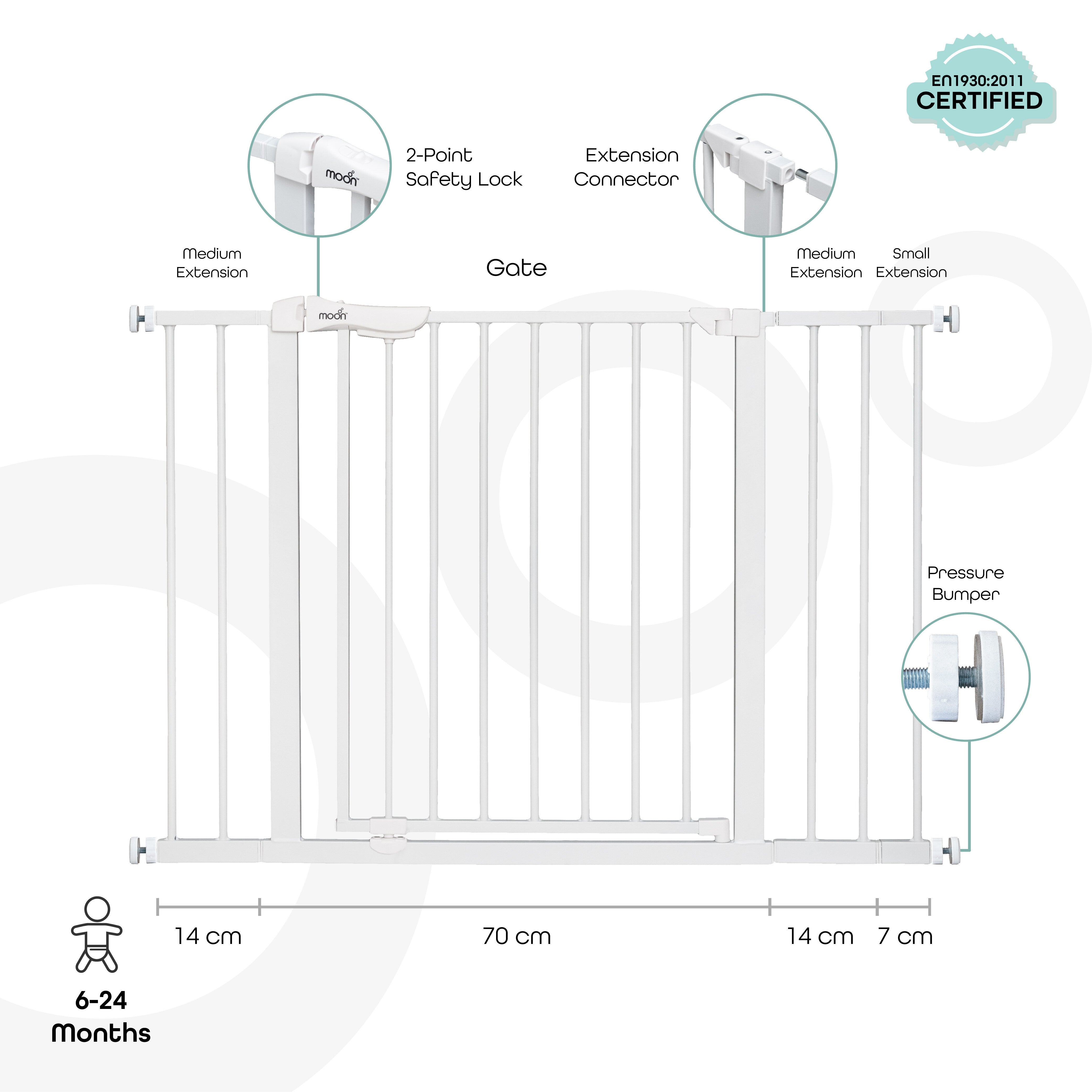 - Utmost safety - The gate includes multiple safety lock features, 4 wall cups for extra security, and mounting hardware. It is ideal for children aged 6 Months and Above