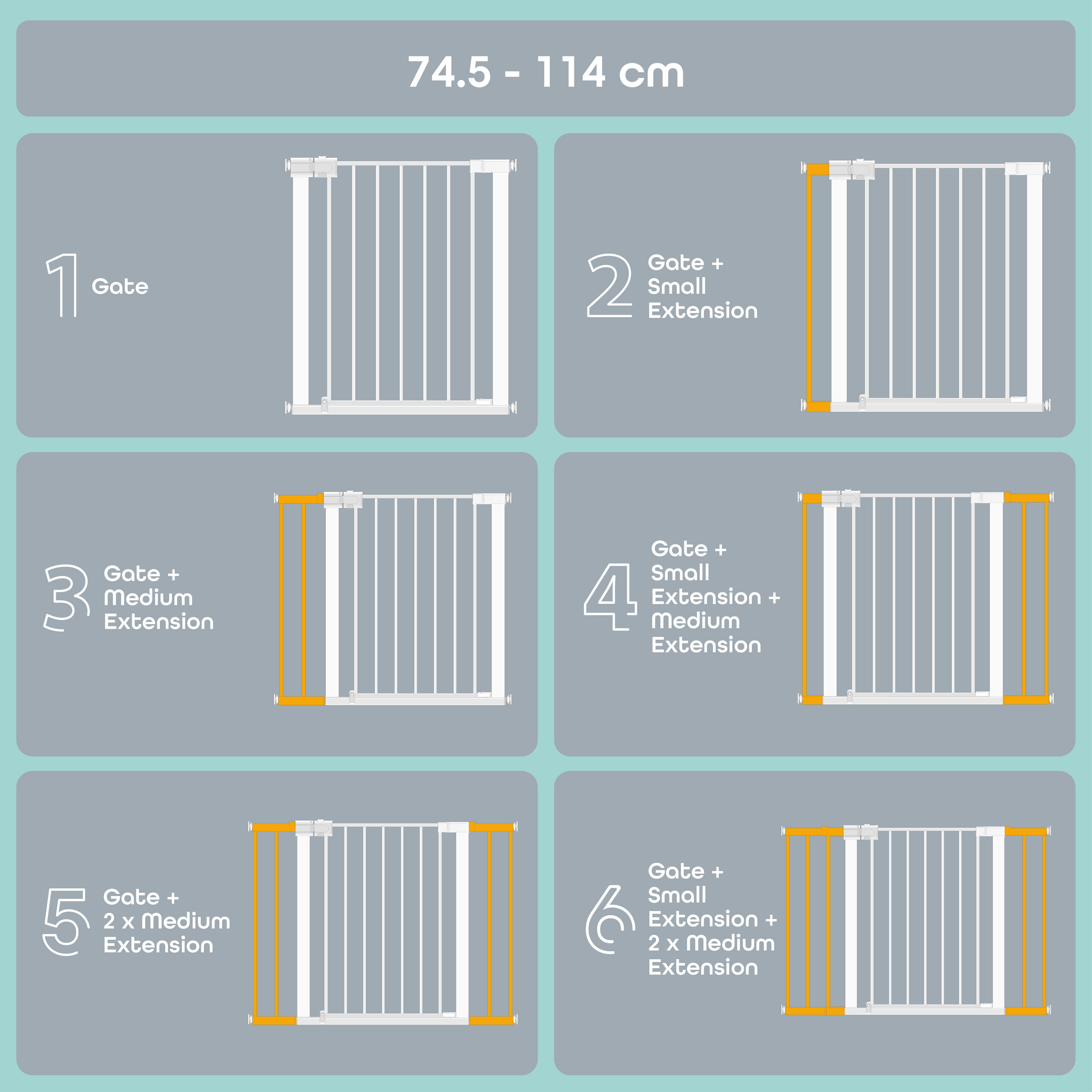 - Dimensions - The extra wide baby gate expands to fit openings between 74.5-100 cm wide, allowing you to secure even large entrances