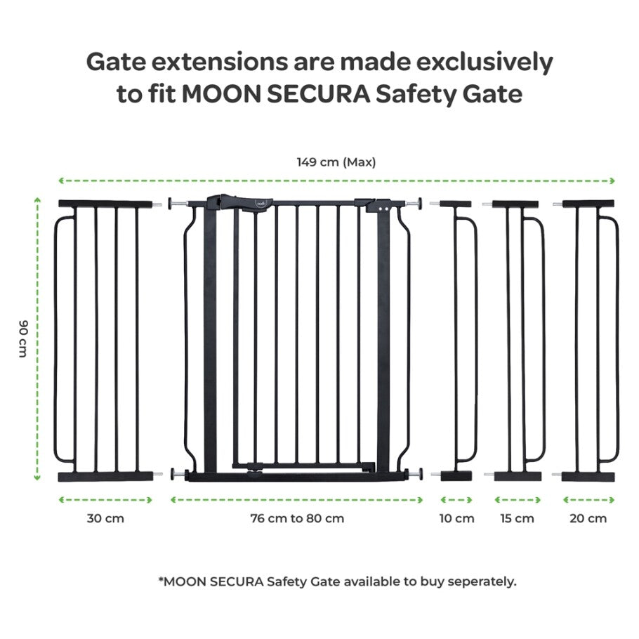 - Versatile Compatibility: Designed to work with Moon Secura safety gate, these extensions offer unparalleled compatibility and flexibility. Whether you need a small or large adjustment, Moon safety gate extensions ensure a perfect fit, making them an essential addition to your safety setup.