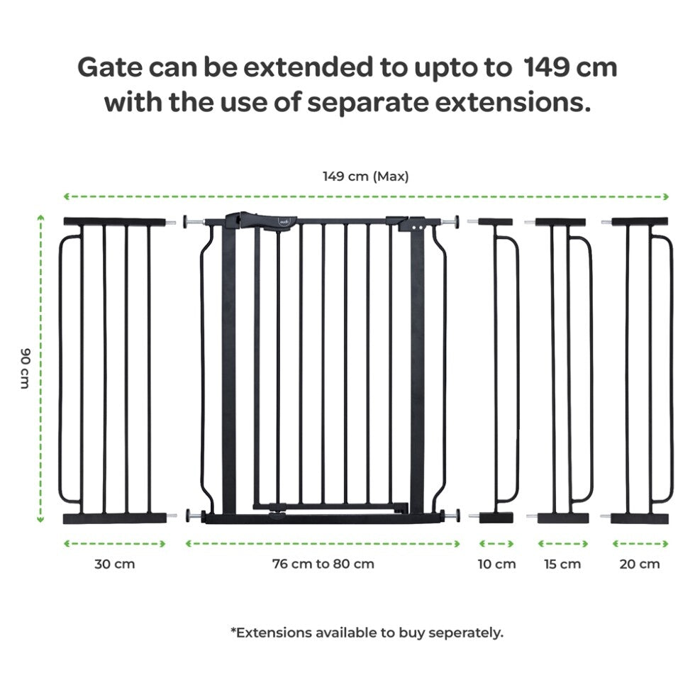 - Adaptable To Any Space: Whether it's a narrow doorway, wide staircase, or sprawling hallway, this wide adjustable safety gate has got you covered! With extensions available for customization and a flexible sizing system, it seamlessly fits openings of various dimensions, ensuring no area of your home is left unprotected. Say goodbye to worries about gaps or awkward angles - this gate adapts to your needs effortlessly.