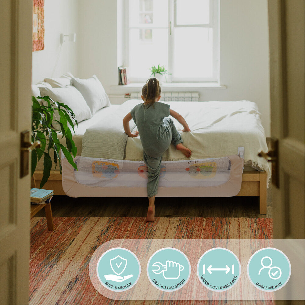 When it comes to our little ones, safety is of the utmost importance. Moonƒ??s Sequr bed rail is to keep your baby safe from bed falls. It is suitable for single mattresses, kid twin beds, doubles, queens and kings. It is also easy to install and open/close; pull on the latch to easily pull down the bed rail. Designed flat iron bars allow your child to be secured safely, without feeling the bars under their mattress. The unique curved pull-down design fits easily around the bed frame.