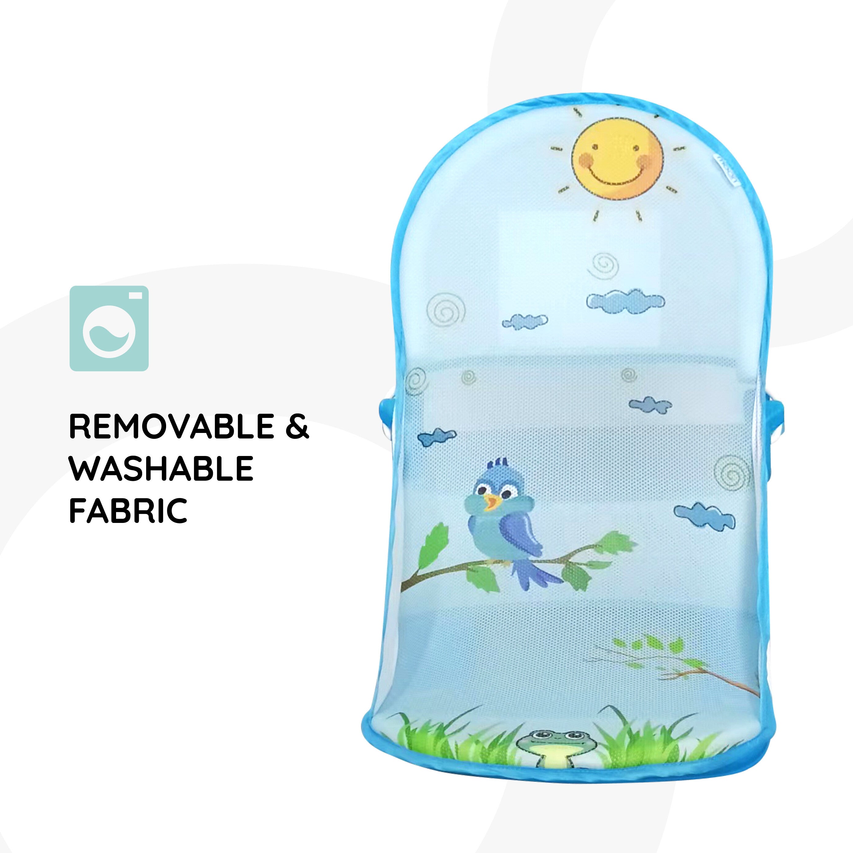 - Adjustable Frame: Our baby bath chair features a mesh sling supported by a sturdy frame that safely cradles your child.