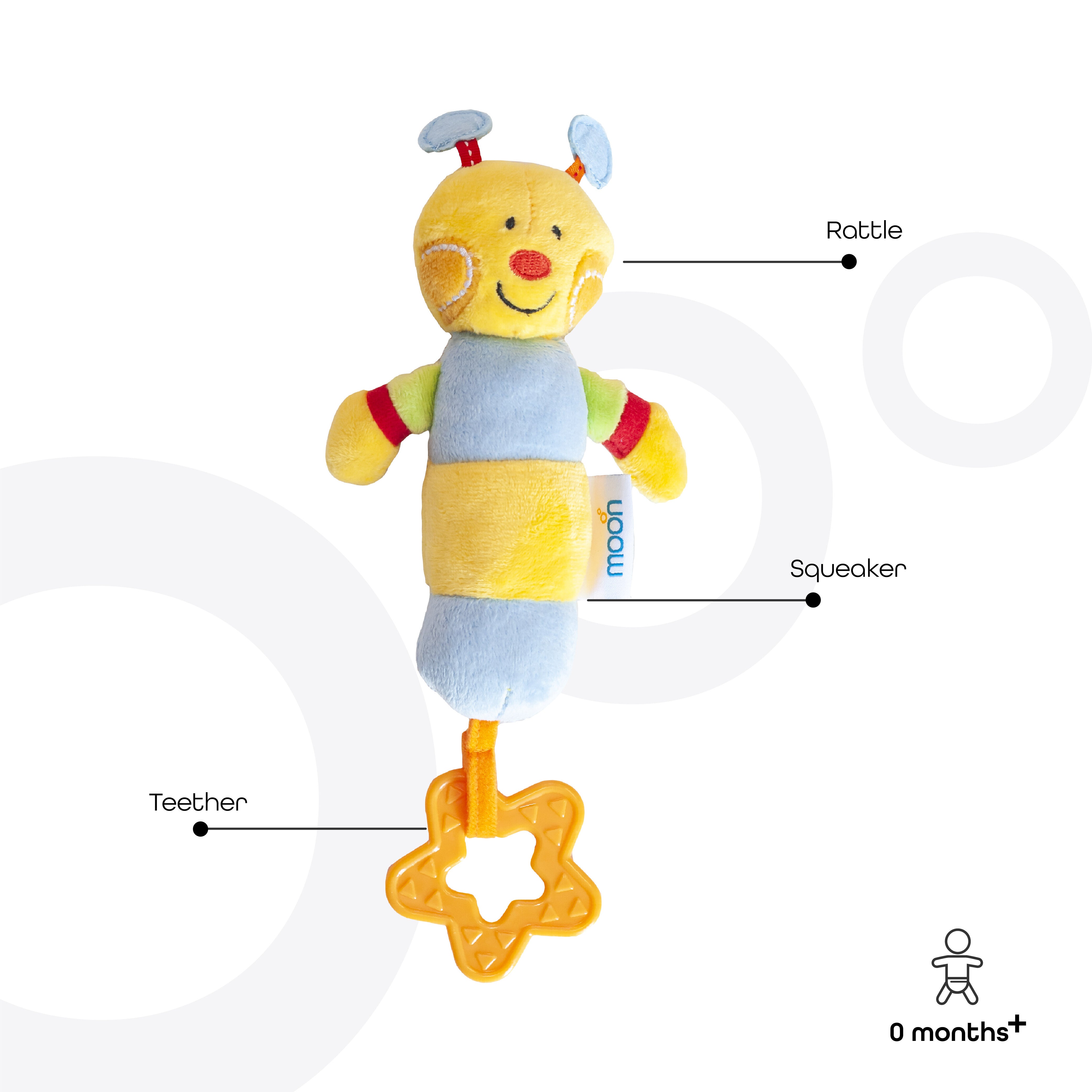 Unleash the wild imagination within your child and let the Moon Soft Rattle Plush Toy become their trusted companion. With its vibrant colors, delightful sounds, and soothing teether, this adorable plush toy is the perfect gift for your little explorer's developmental journey!