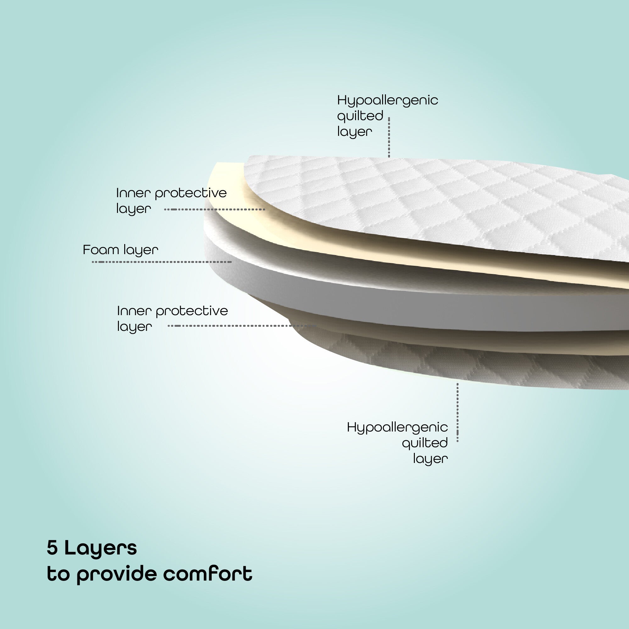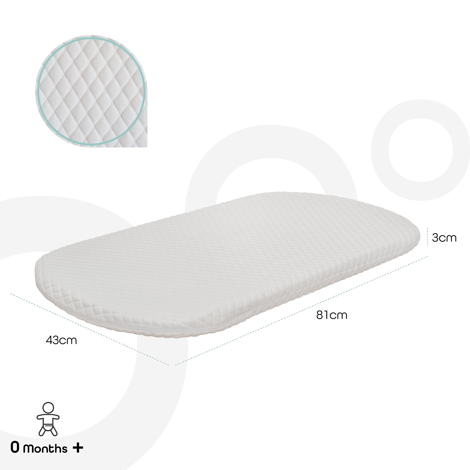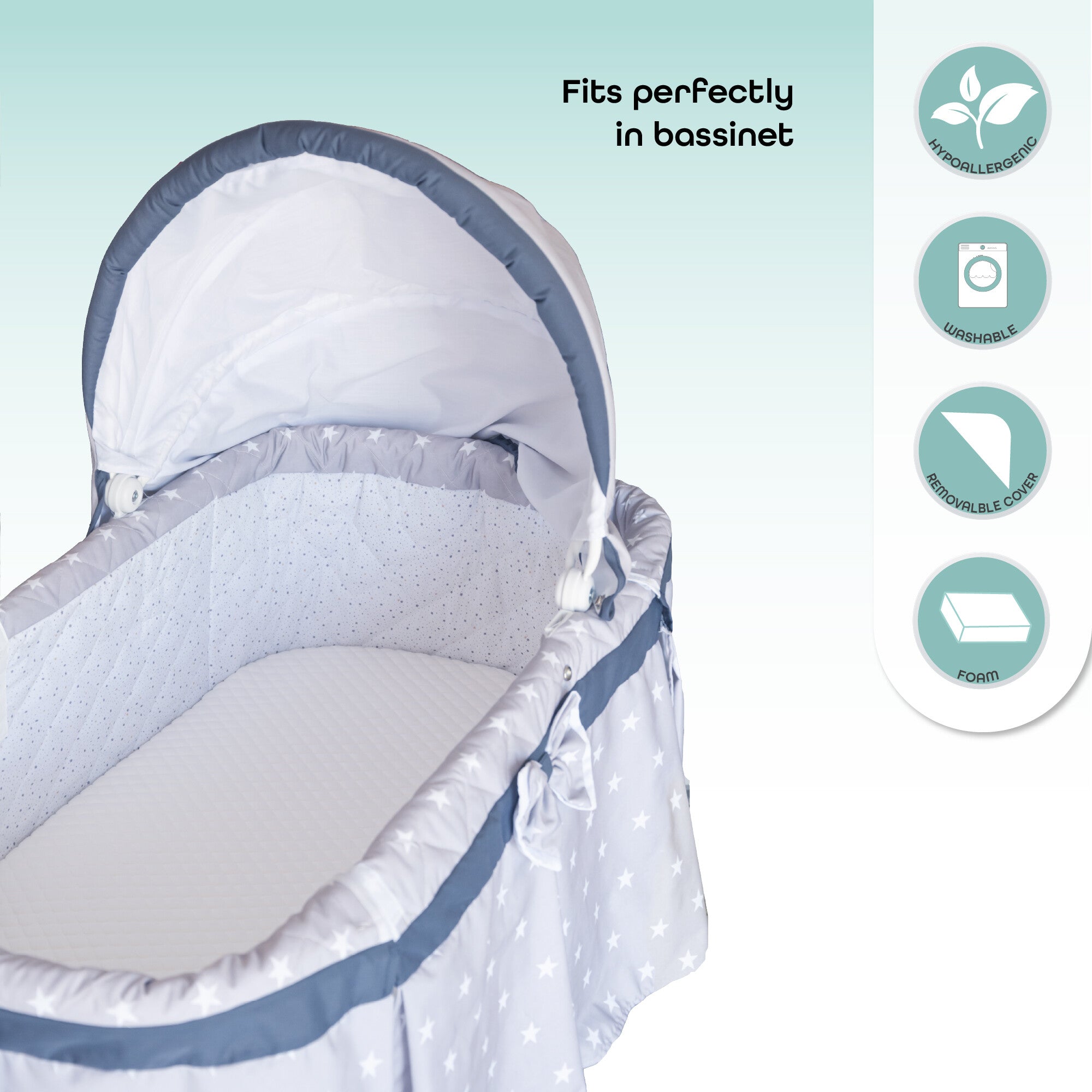 This moon bassinette mattress has been specifically designed for oval shaped bassinettes. It is easy to clean as the cover is removable and washable so you never have to worry about the messiest stains. The 5 layers - hypoallergenic quilted layers on the top and bottom, 2 inner protective layers and a thick foam layer in between has been provided for your child's utmost safety and comfort so they can have a sound sleep.