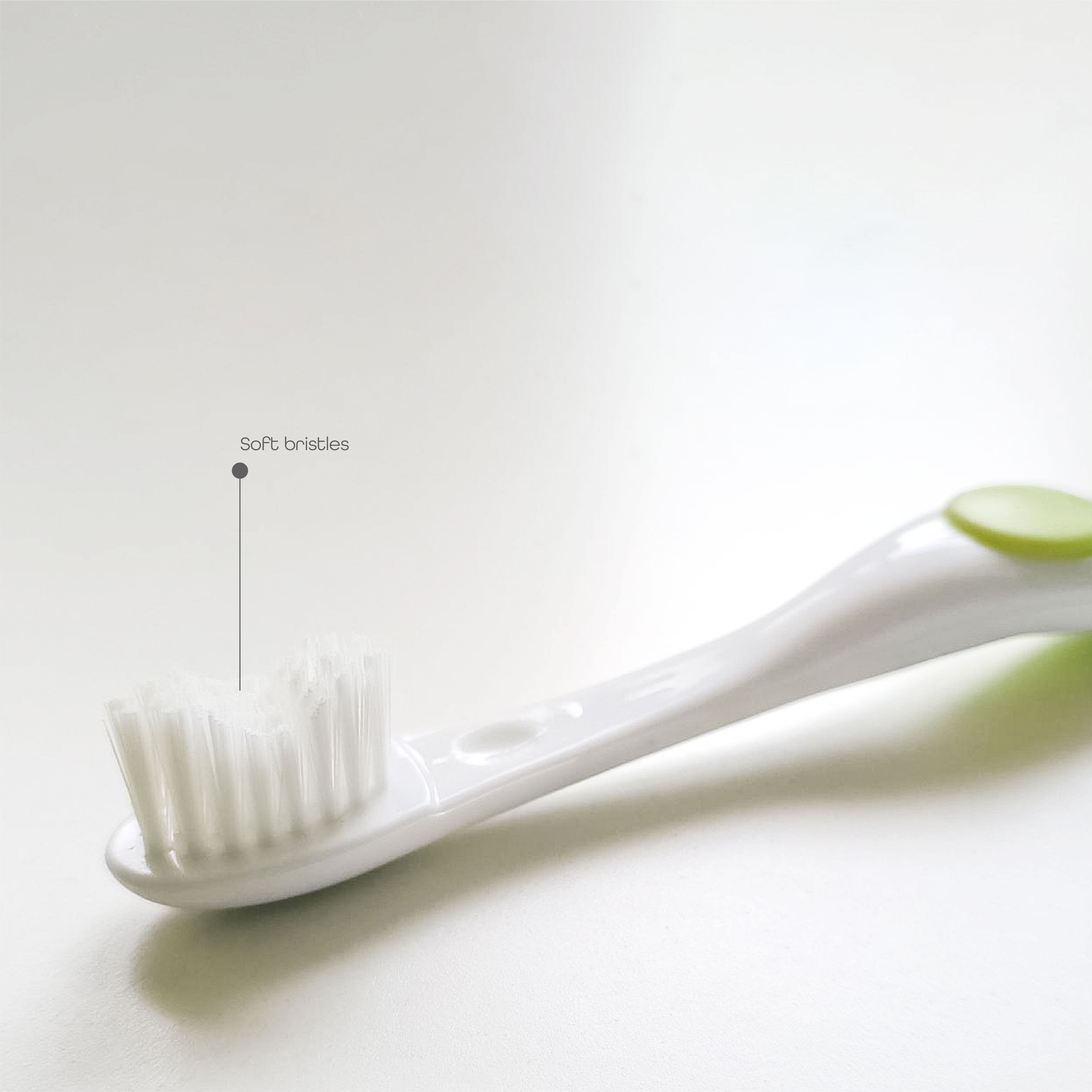 It is imperative to slowly, step-by-step, grant your children the ability to take care of themselves. Moon's toddler toothbrush helps your little one develop the skills needed to brush his/her own teeth. This toothbrush is suited to small lips and has soft bristles for a gentle brushing experience.