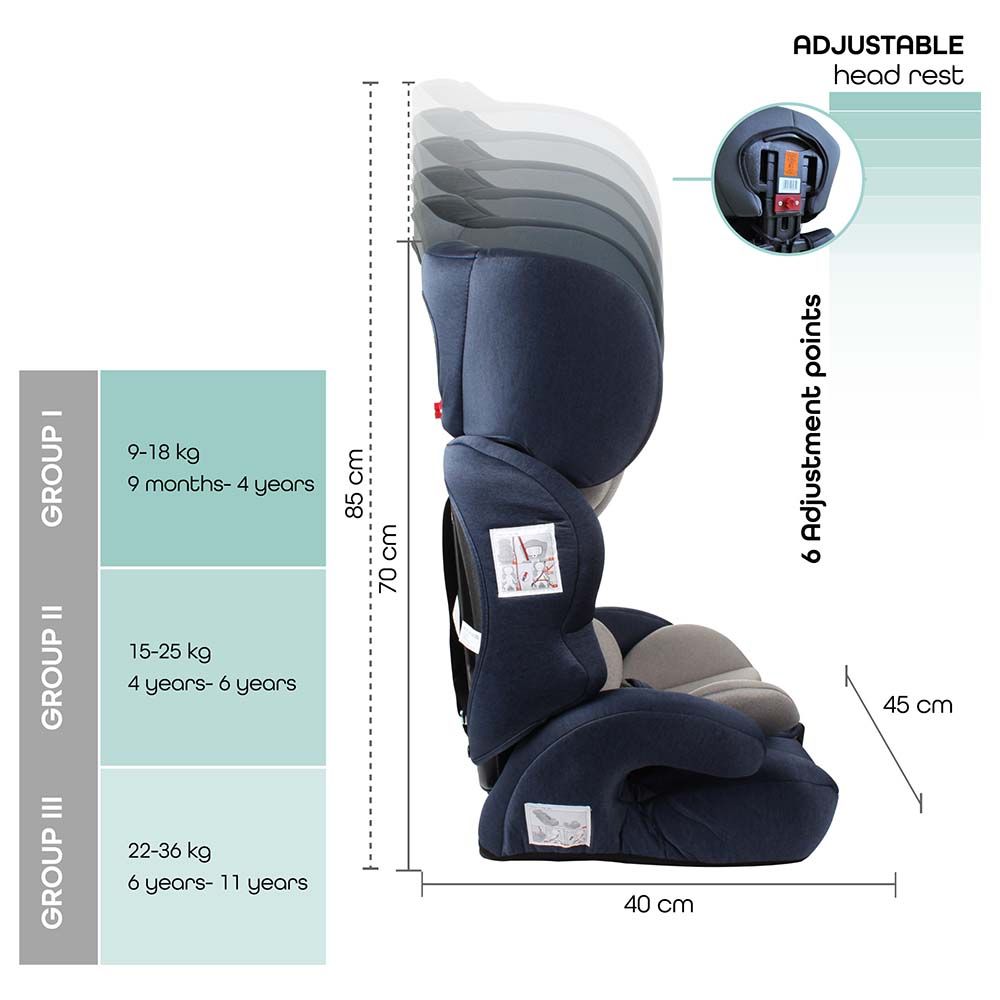 - Multi-Stage Car Seat: Made with longevity in mind, the MOON Tolo baby car seat is a high-quality option for groups 1-2-3. This convertible, multi-stage safety system is built to the greatest standards and will last from the time your child is 9 months to 12 years old