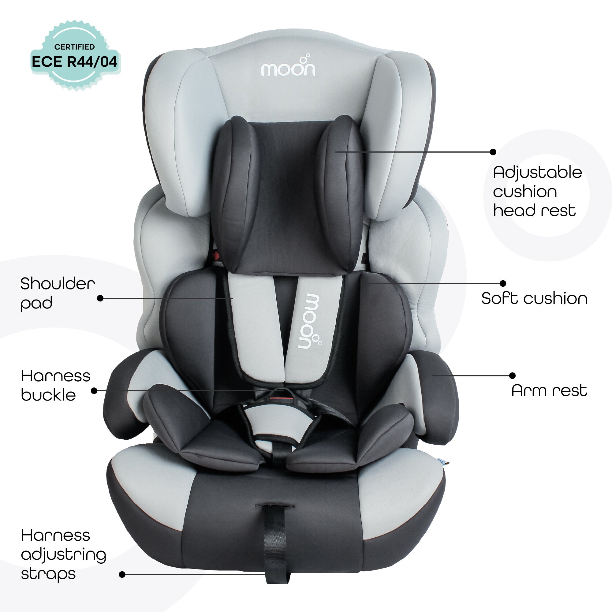 - Multi-Stage Car Seat: Made with longevity in mind, the MOON Tolo baby car seat is a high-quality option for groups 1-2-3. This convertible, multi-stage safety system is built to the greatest standards and will last from the time your child is 9 months to 12 years old