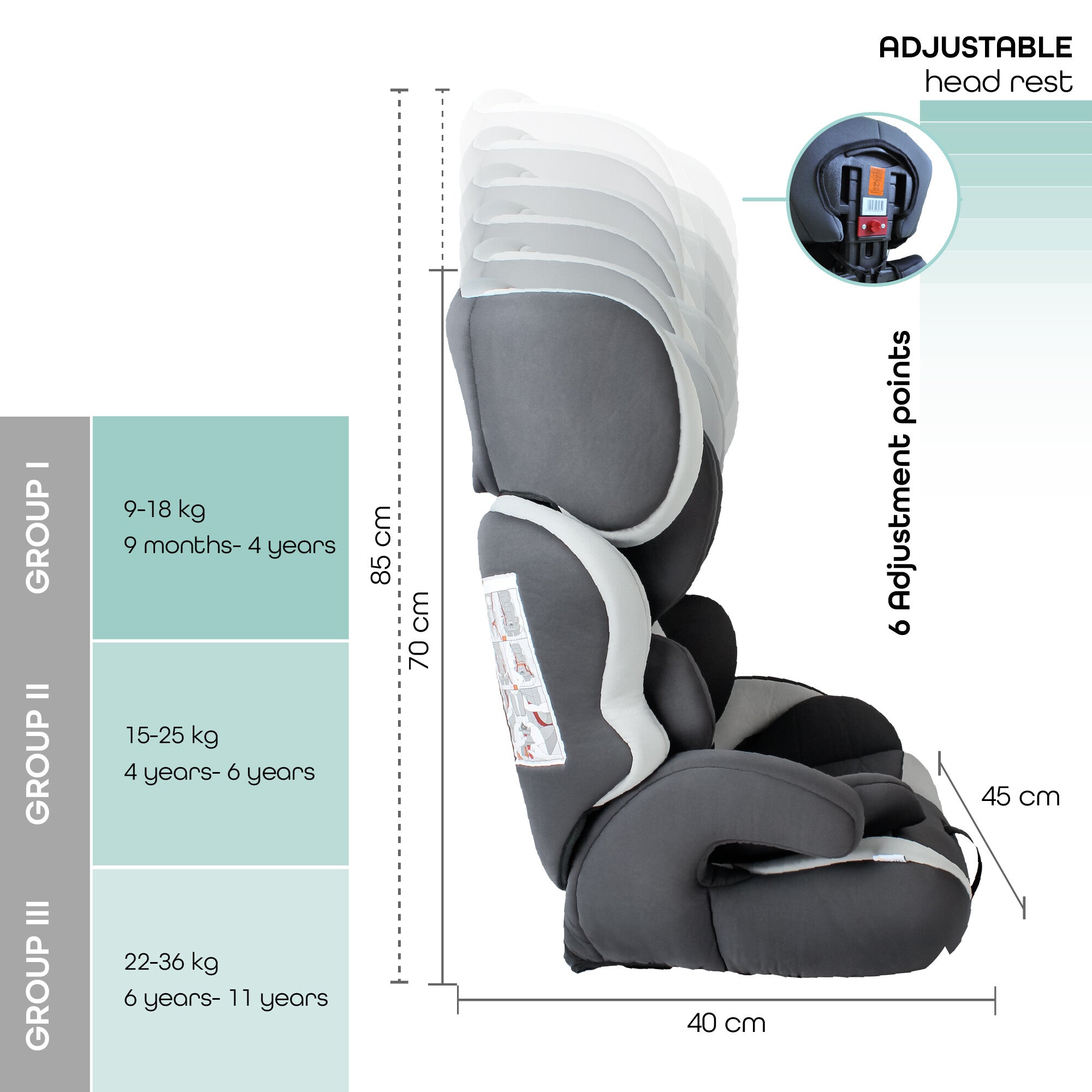 Recommended Age: Suitable for 9 months until 11 years (up to 36kg)