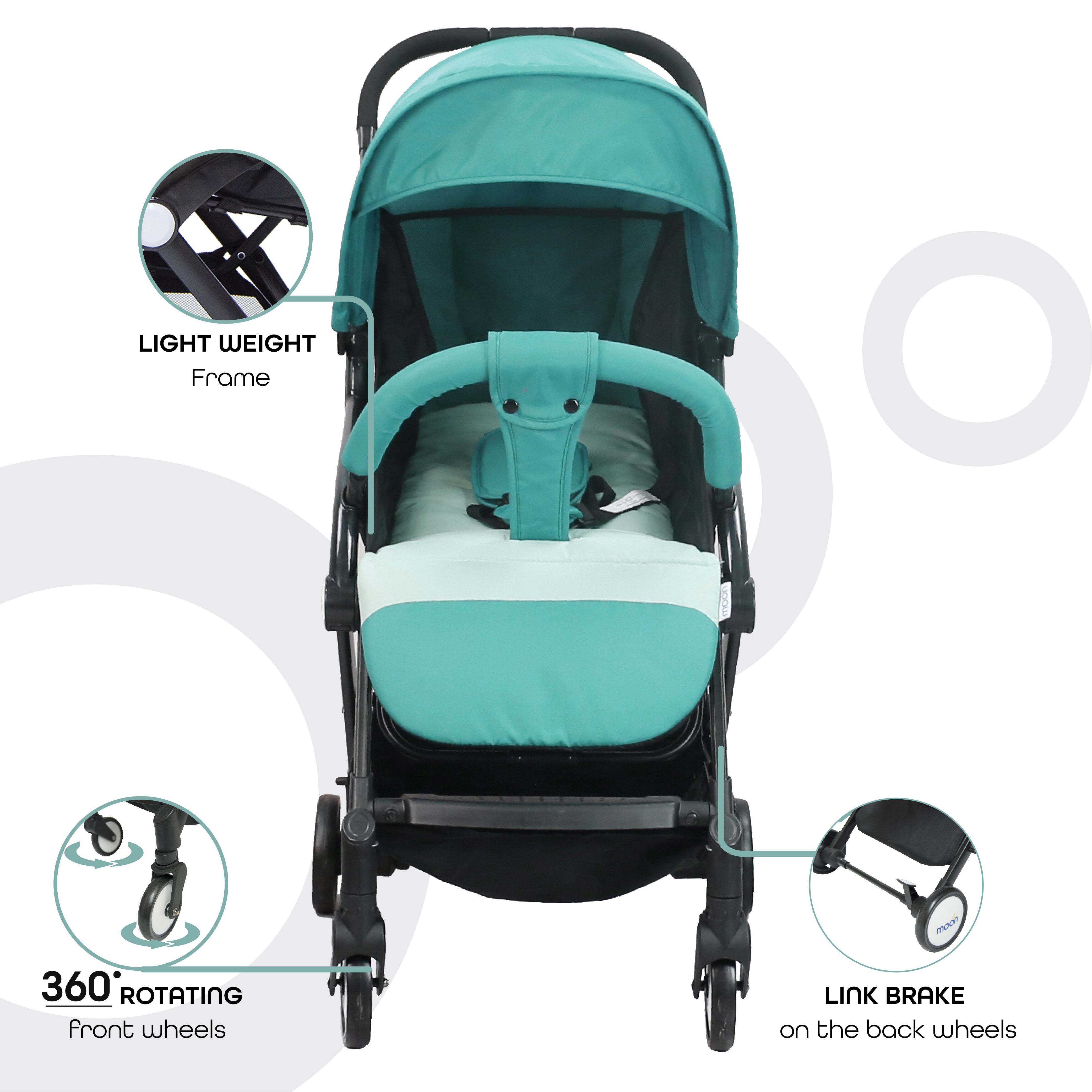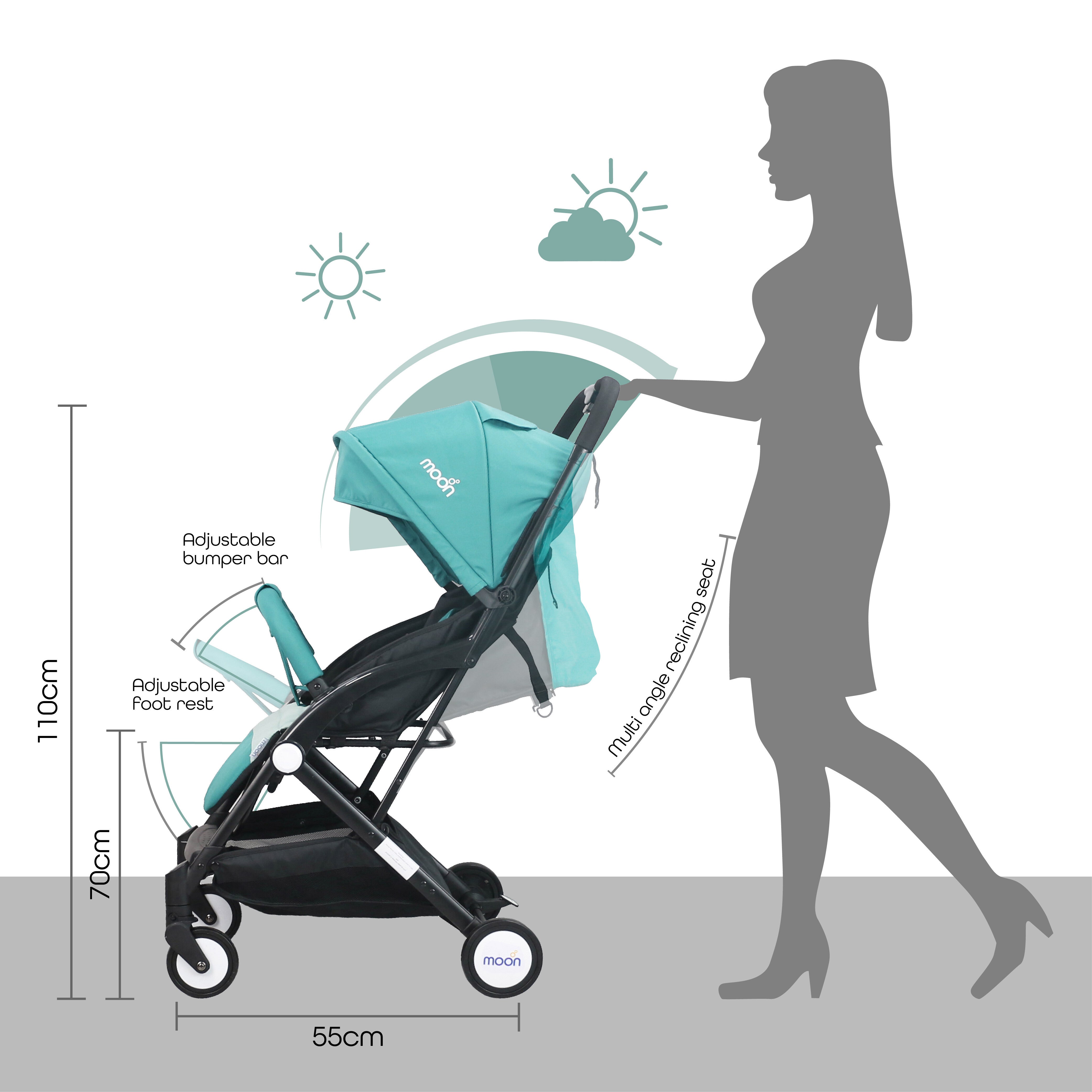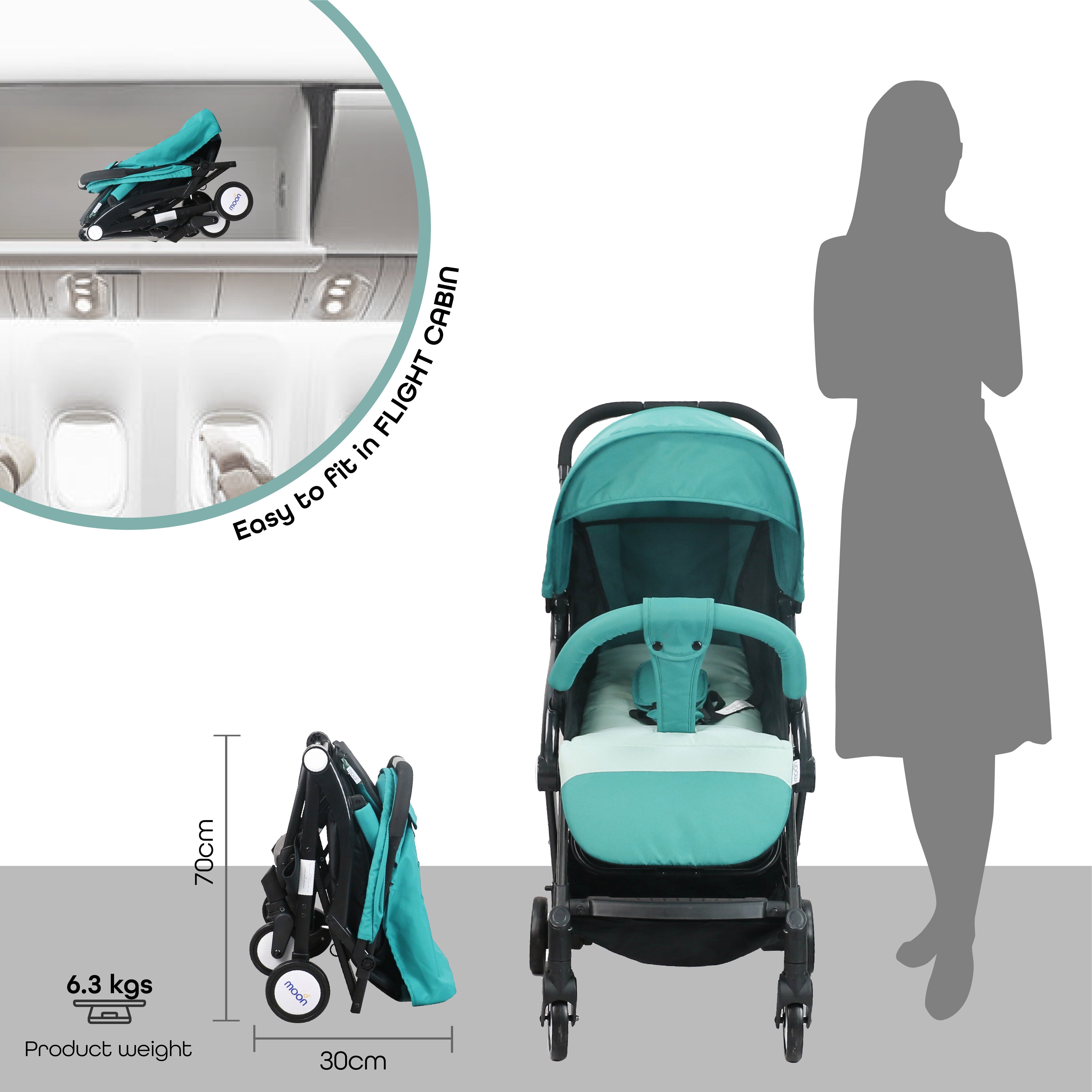 - EASE OF TRAVEL: MOON Travel Lite is an indispensable addition to your baby necessities since it is compact and also can be folded up easily with only one hand, has a seat that can be adjusted to fit your baby. It has a retractable canopy with mesh window gives them a sense of security while also protecting them from the sun's rays and rain.