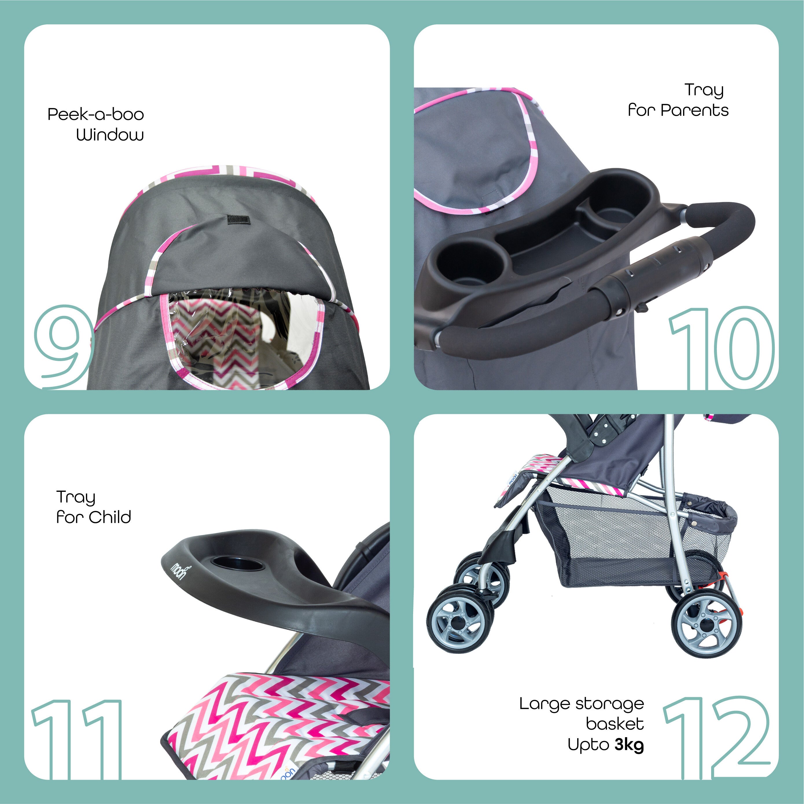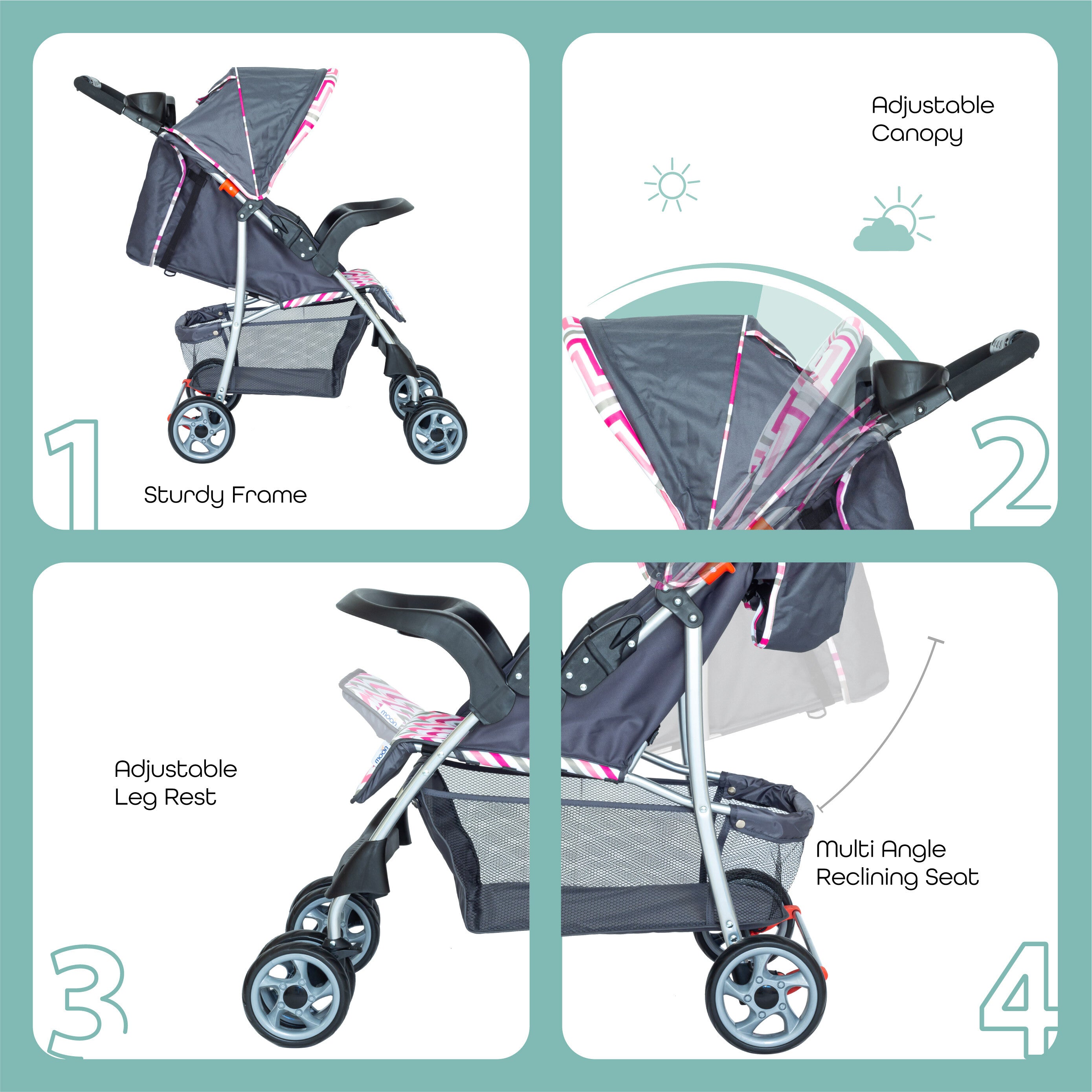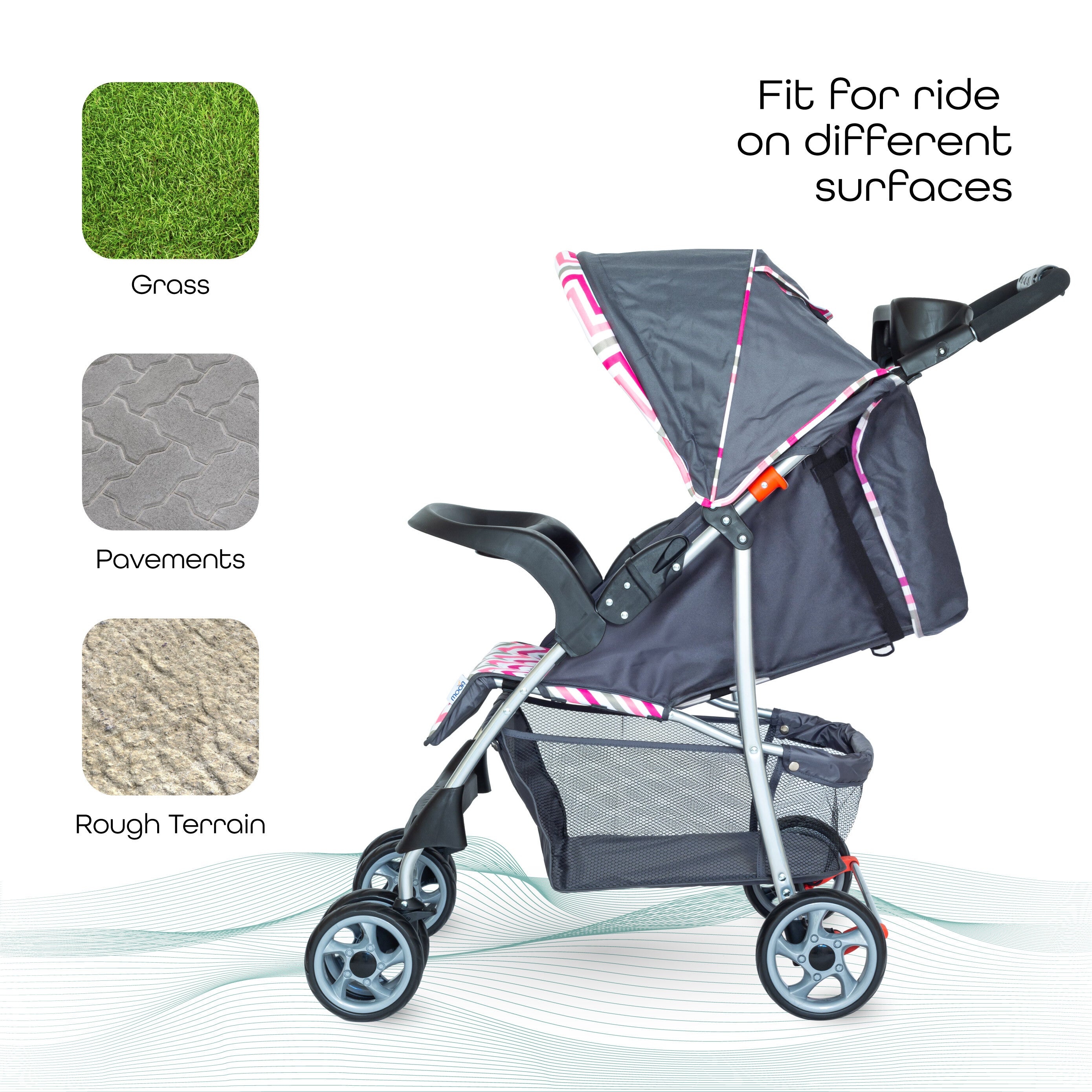 This fully foldable stroller's combination of rear wheels with brakes for securely travelling and front swivel wheels with a fixer will let you to focus on giving your child the careful care they need as you enjoy even a simple afternoon stroll.