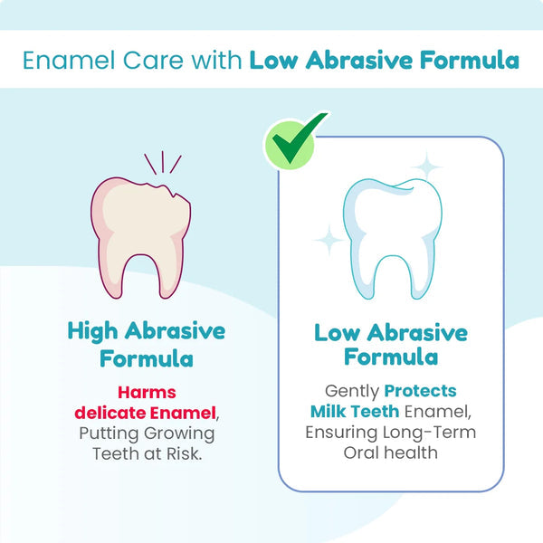 Paired with a soft-bristled baby toothbrush and a hygiene cap, we make brushing easy and enjoyable for delicate gums. Perfectly designed for kids above age 12 months, it turns brushing into a fun, fruity adventure while protecting milk teeth from cavities. Clean teeth, a happy kid, and peace of mind for you!