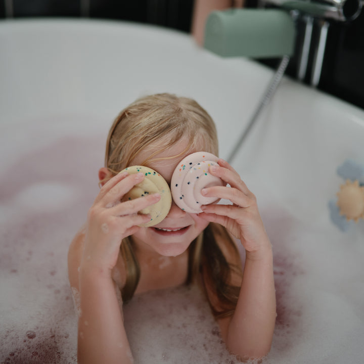 Add a pinch of sweetness to playtime with these mix and match silicone cupcakes. Made in four delicious shades, littles can practice color matching or get creative and cook up their own combinations. The sprinkled frosting top and squeezable silicone base easily separate and reattach to help develop fine motor skills and hand-eye coordination. With small draining holes on the bottom for easy cleaning, these cupcakes are a charming addition to play kitchens, tea time, or bath time.