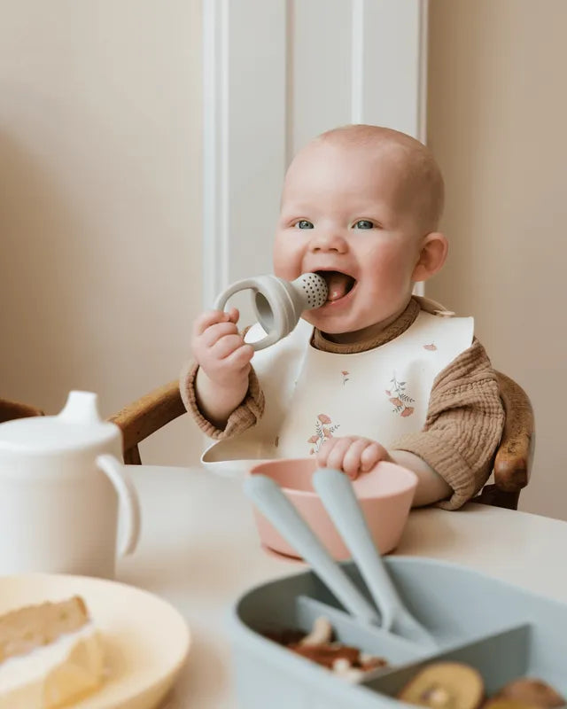 Introduce little foodies to new flavours and textures with Mushie fresh food feeders, designed for safe self-feeding. Made from food-grade silicone and featuring an easy-to-clean, two-piece design, this feeder will quickly become a favourite for at-home meals or on-the-go snacks. Its handle is easily held by little fingers as the small holes release the right amount of fresh or frozen favourites from its soft but sturdy design.