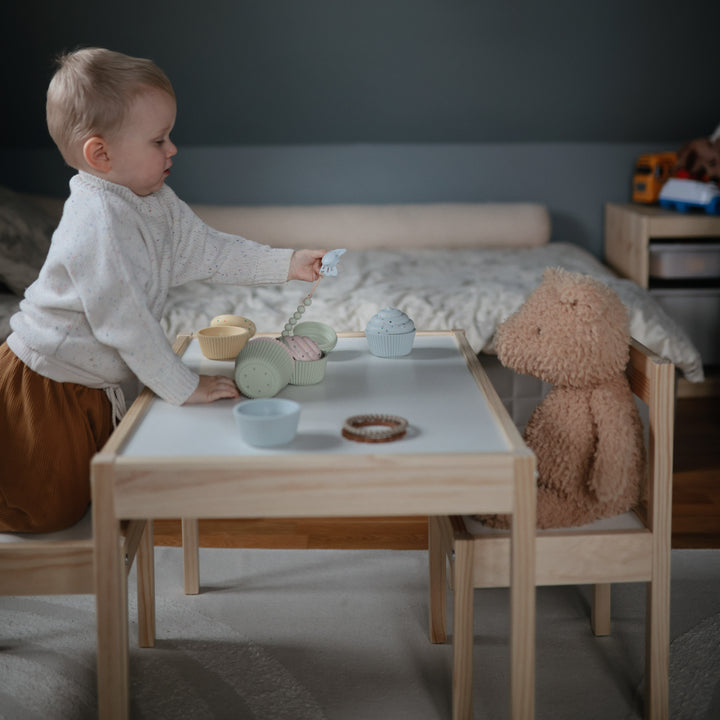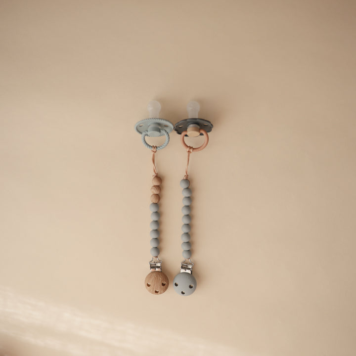 The Mushie silicone pacifier clip offers durability, function and simplicity to families on-the-go. Made from 100% food-grade silicone, our clip features a silicone clasp that brings a modern take to a traditional favorite. With a single color stack of silicone beads, the Hera clip offers families a beautiful accessory in a minimalist design. The clip is easy to clean and helps keep soothing items in reach for little ones.