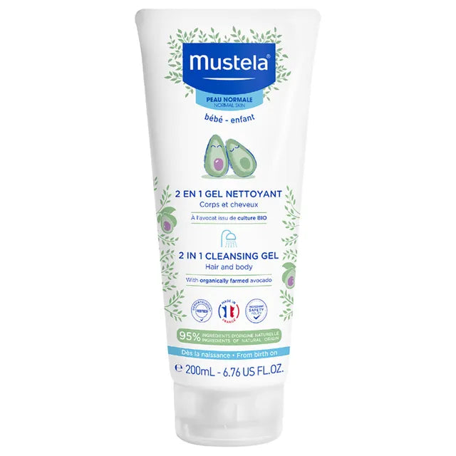 Mustela's tear-free, 2-in-1 Cleansing Gel cleans while protecting your baby's delicate skin and hair. Gentle enough to use on newborns. Both a baby wash and shampoo, our plant-based, biodegradable formula leaves skin feeling soft and smooth without any residue or dryness.