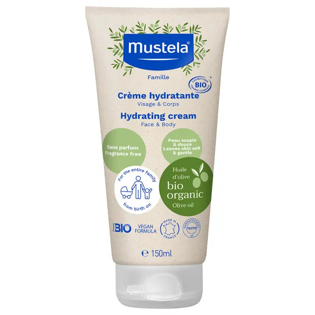 This Certified Organic Hydrating cream for the face and body protects even the most sensitive skin. Its fragrance-free vegan formula with organic olive oil moisturizes baby and can be used by the entire family, as soon as birth*. , *Babies out of NICU