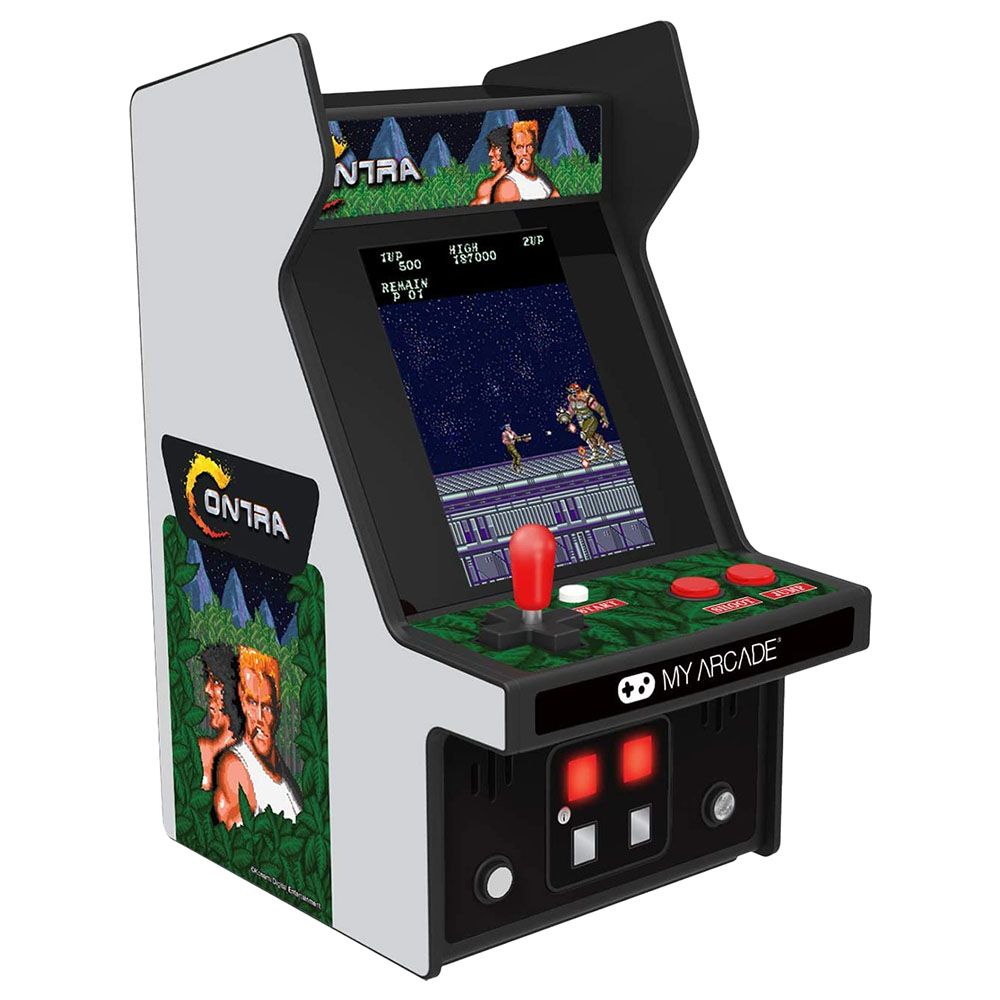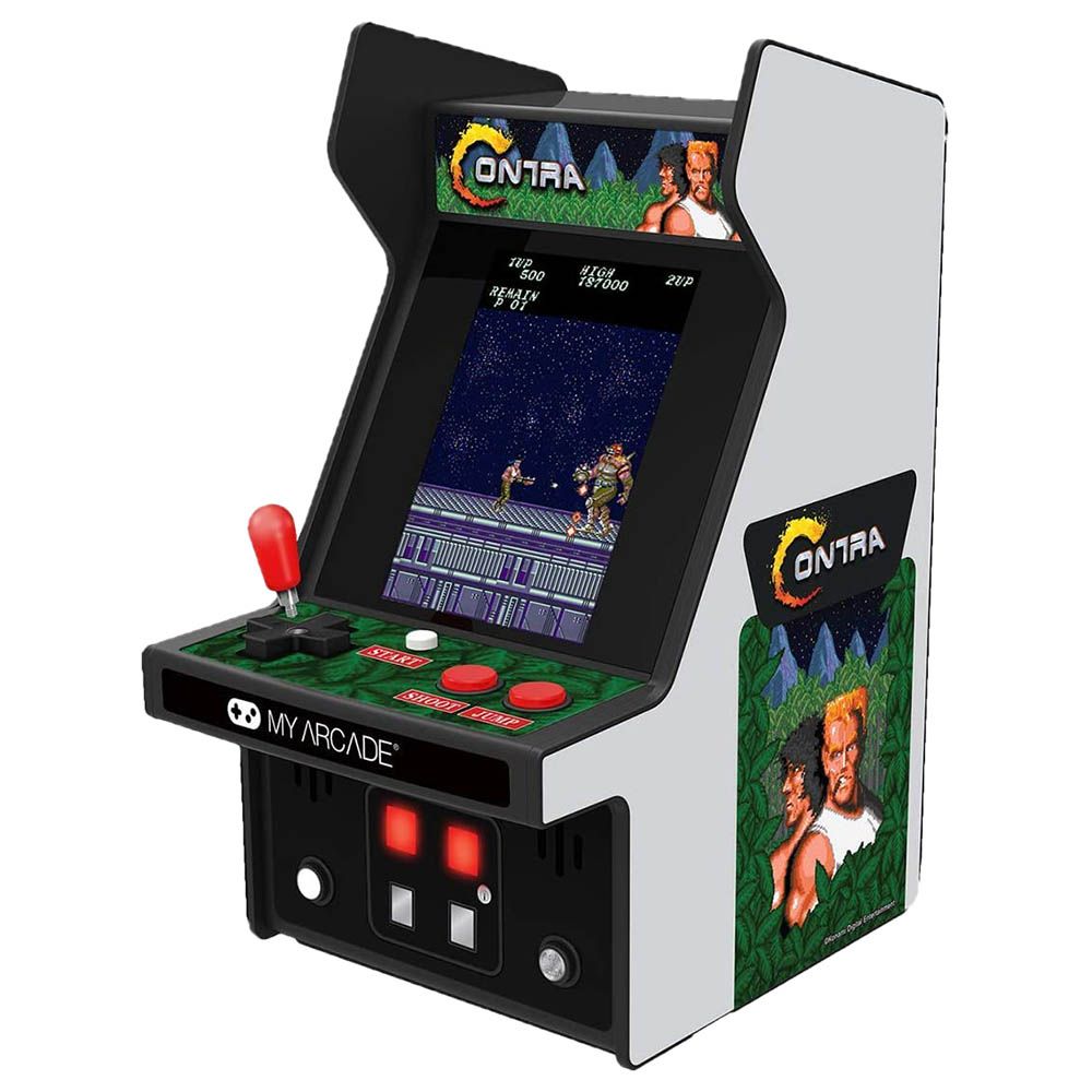 The year is 2633 and the world is in grave danger. It is up to you, the Contra unit, to run, jump, and shoot your way through 10 stages to defeat Red Falcon and his army. Contra first hit the scene in 1987 and immediately set the standard for future platform shooters with its two-player co-op mode and engaging game-play. Features My Arcades CO/VS Technology which allows you to link your Micro Player with a friends for co-op play , Multiplayer Action!, Allows for CO/VS functionality for co-op action with another player , , Arcade version of Contra features artwork inspired by the original Contra arcade cabinet and a full color backlit display., Collectible Arcade Machine, Perfect for any game room, office, or display case.
