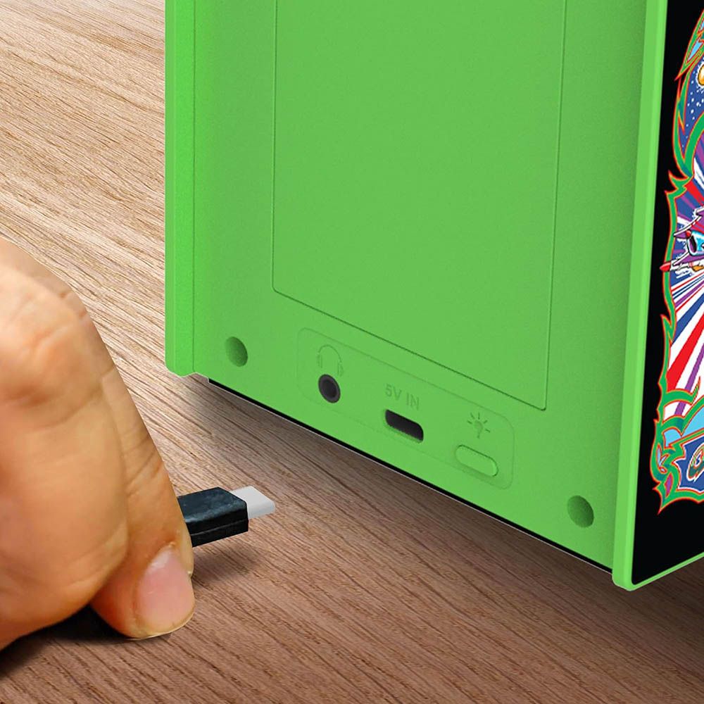 - Features artwork inspired by the original GALAGA arcade cabinet.
