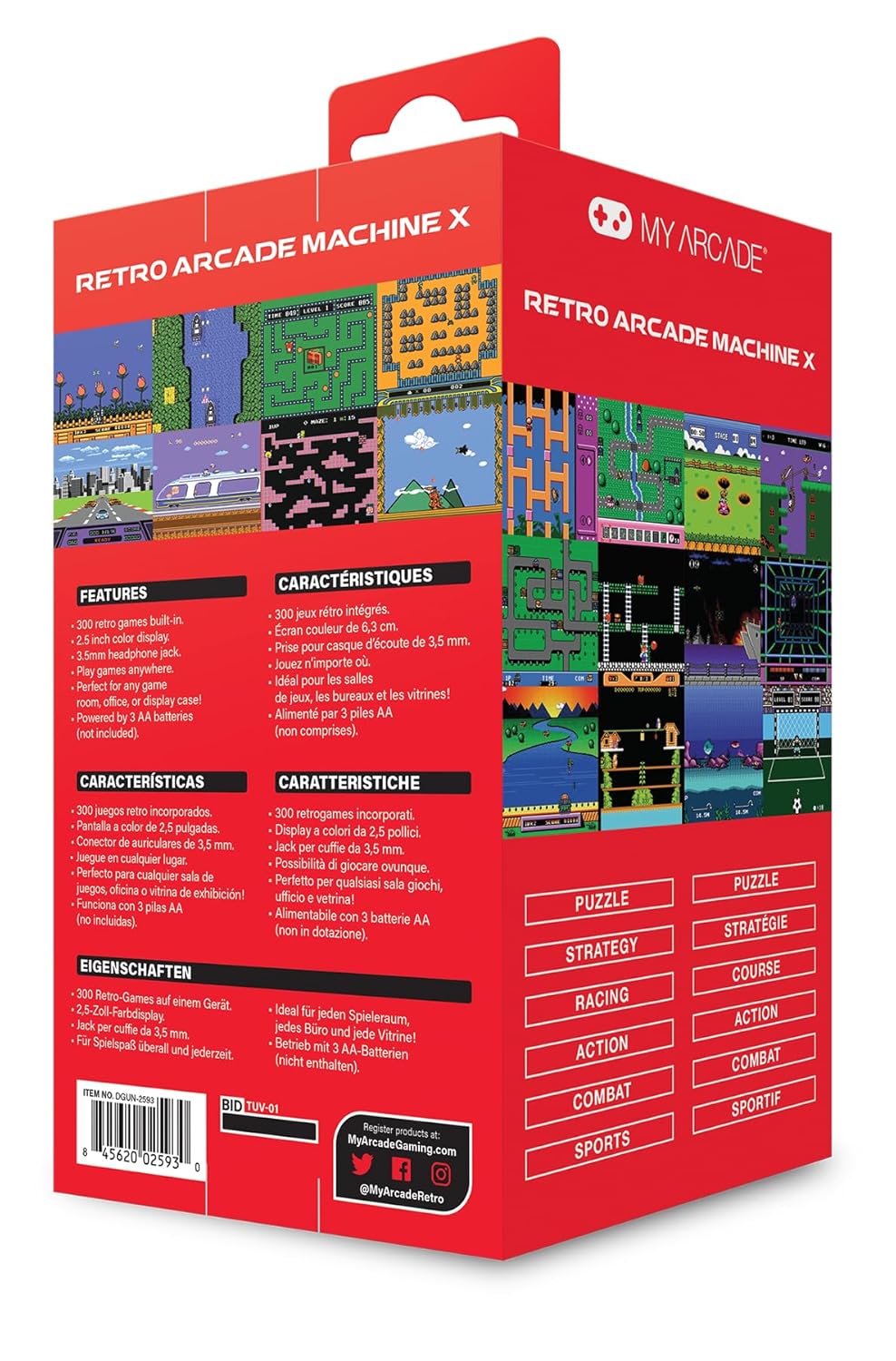 Step back to a simpler time when the local arcade was king of entertainment. The Retro Arcade Machine X brings back the arcade experience that can be played anywhere. 300 games and a full color LCD screen with controls that mimic original arcade cabinets so you can soar the skies, take out the aliens, or win the race - all from the palm of your hands!