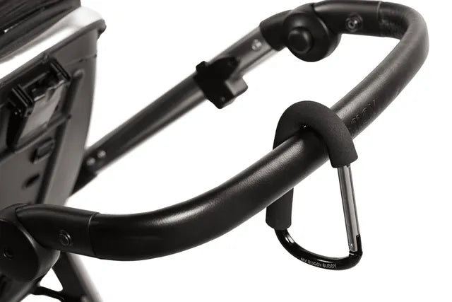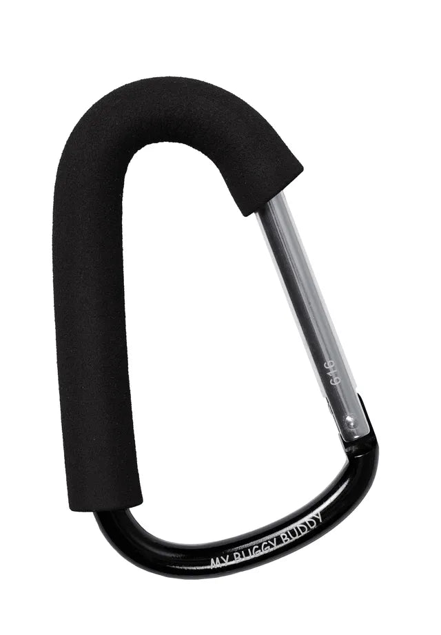 The My Buggy Buddy Clip allows bags to be securely hung from a pushchair handle, leaving your hands free to steer. This clip simply snaps into place and bag handles can be added via a metal gate.