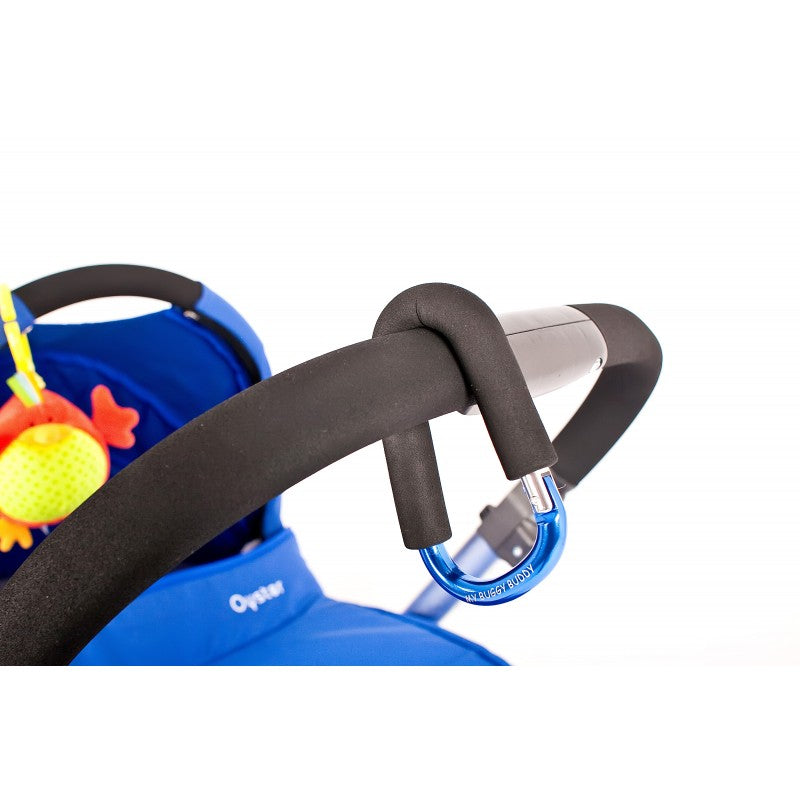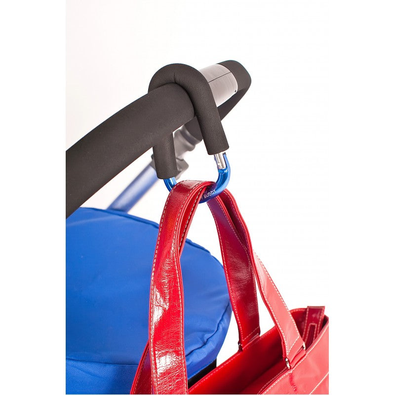 The My Buggy Buddy Clip allows bags to be securely hung from a pushchair handle, leaving your hands free to steer. This clip simply snaps into place and bag handles can be added via a metal gate.