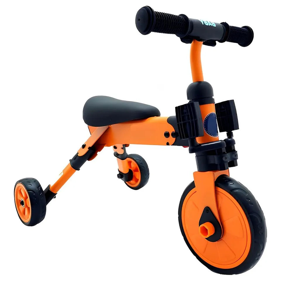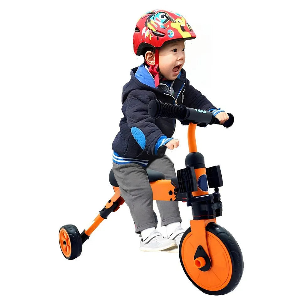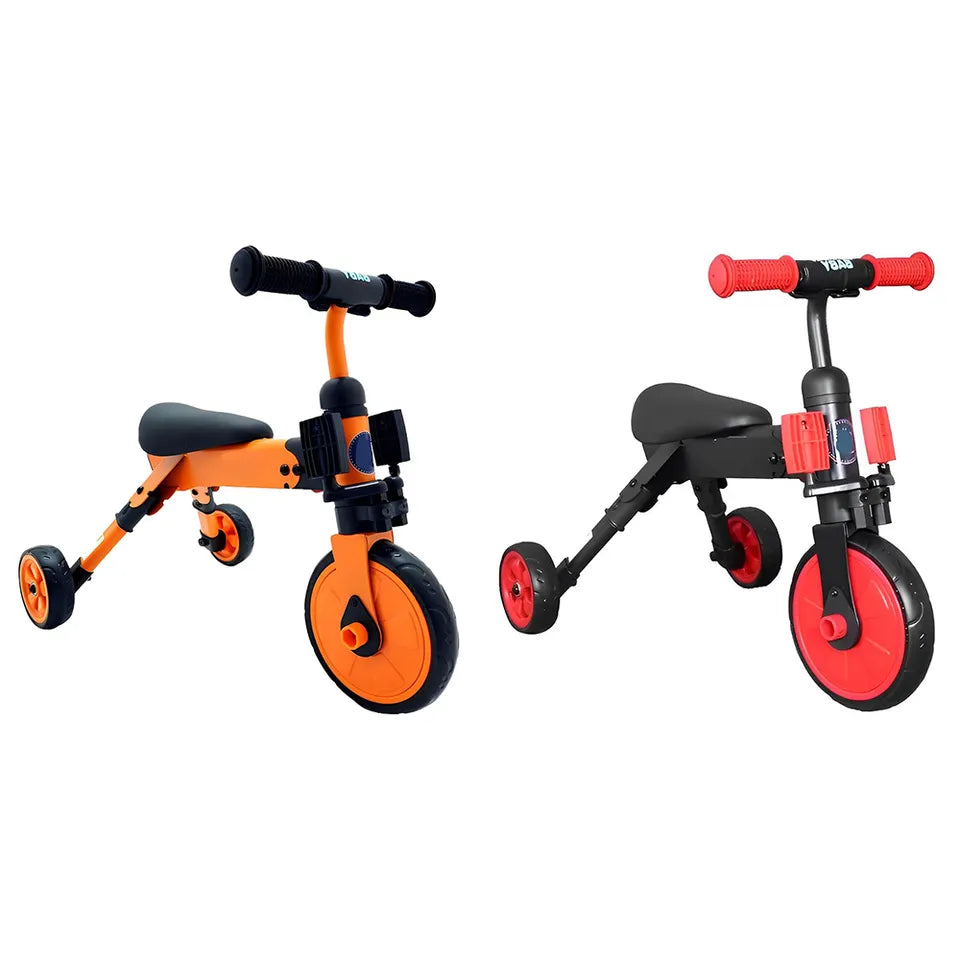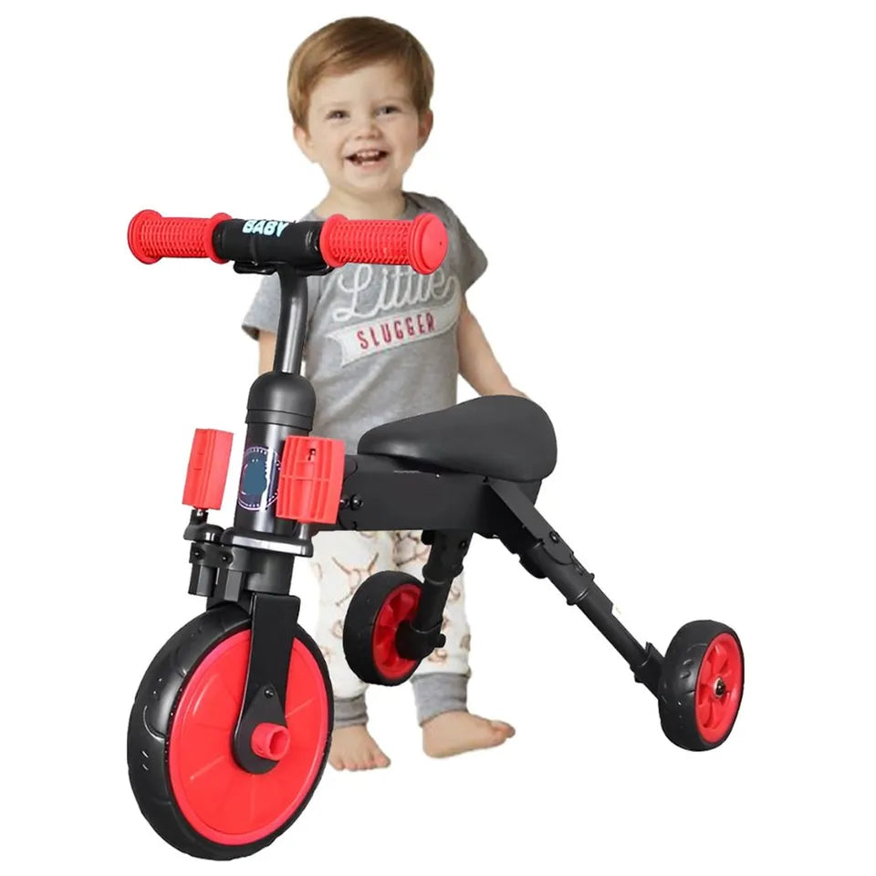 - The frame of this tricycle is foldable to aid portability and constructed from steel to support children who weigh up to 15 kgs.