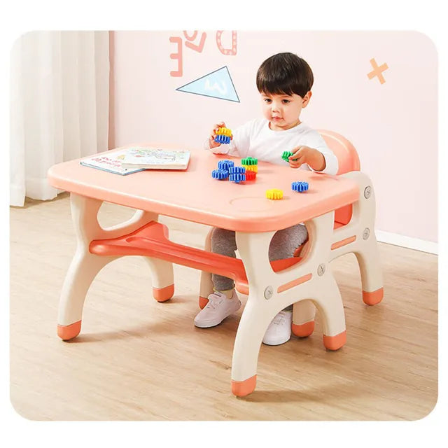 MYTS Kids table & chair set is the perfect children's table and chair set that will give them a true child friendly atmosphere and joy. Ideal for your kids playroom or bedroom. Easy to assemble with simple instructions included. Please note there can be slight change in design and color from what shown in picture.