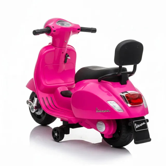 Hello mamas get ready for the most adorable ride for your little one Introducing the Myts Kids Vespa Licensed Electric Ride-On Scooter in beautiful Pink. This authentic mini-Vespa combines iconic design with child-safe performance and a comfy ride. Powered by a 12V rechargeable battery and two motors it delivers smooth acceleration and stable riding giving you complete peace of mind.