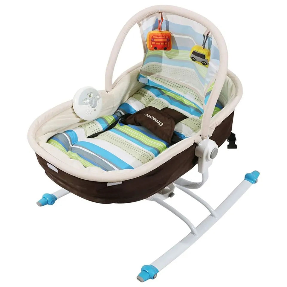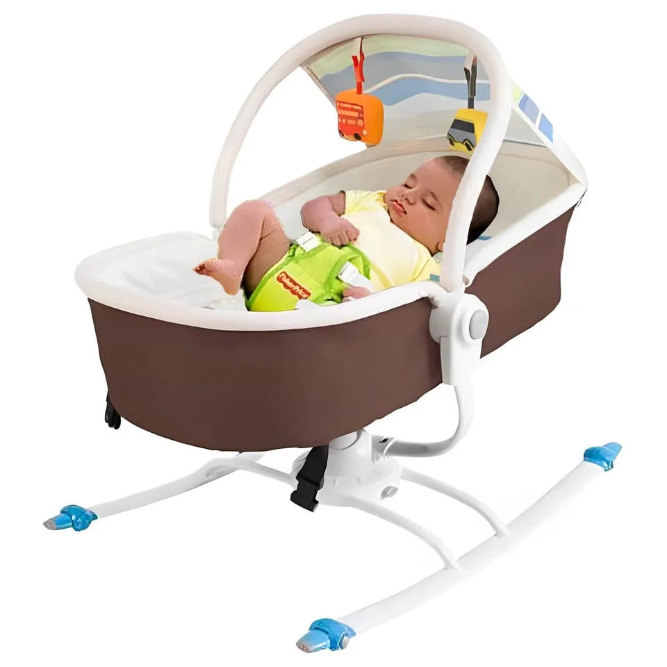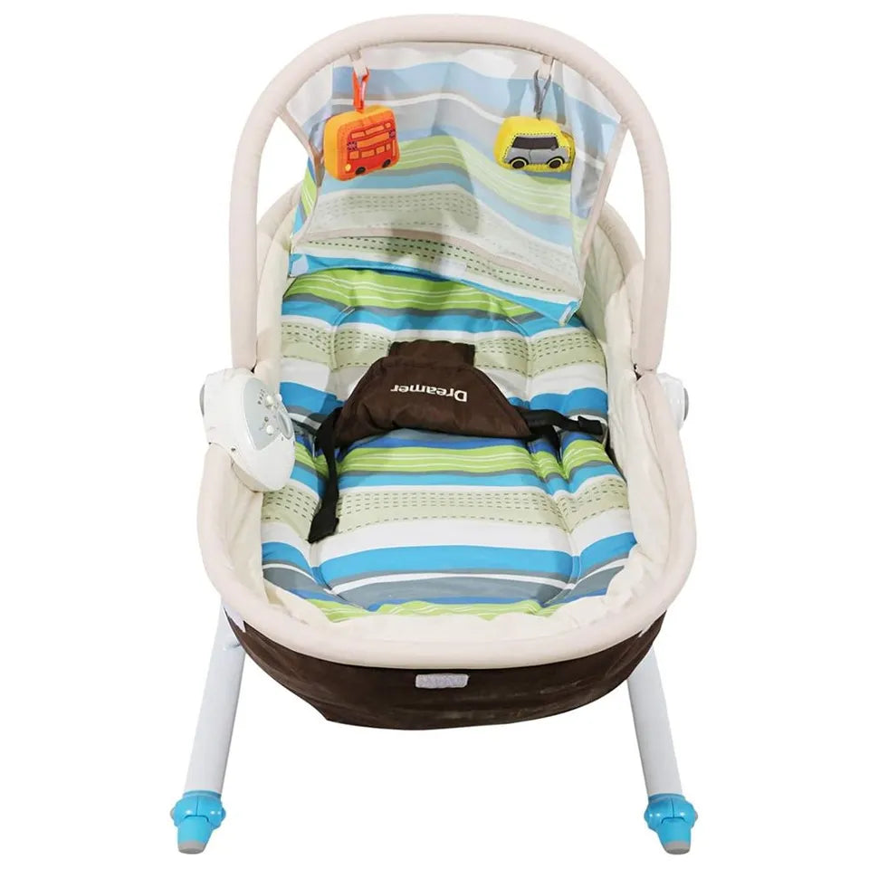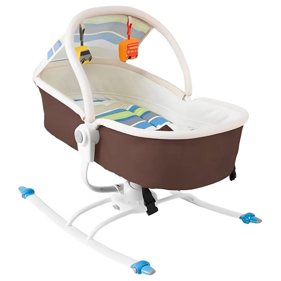 Comfortable rocker equipped with a toy bar with dangling toys, welcoming little ones right from birth up to a maximum weight of 10 kg. The special play bar, with Slide Line system, designed in collaboration with the Psychologist of the developmental age, is functional to the sensory and cognitive development of the child.