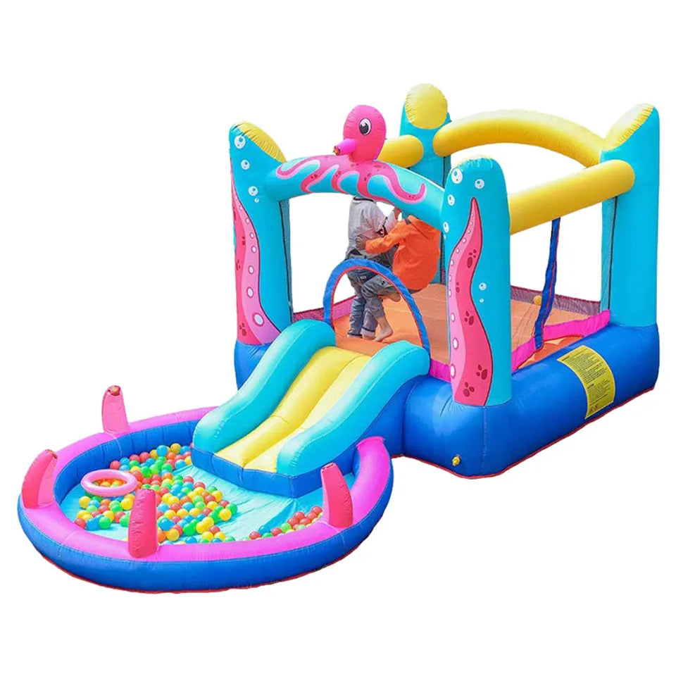 - Octopus shape design with sprinkler on the bouncer and pool have a lot of fun for kids to play water in the pool and stay cool in the summer/ winter.