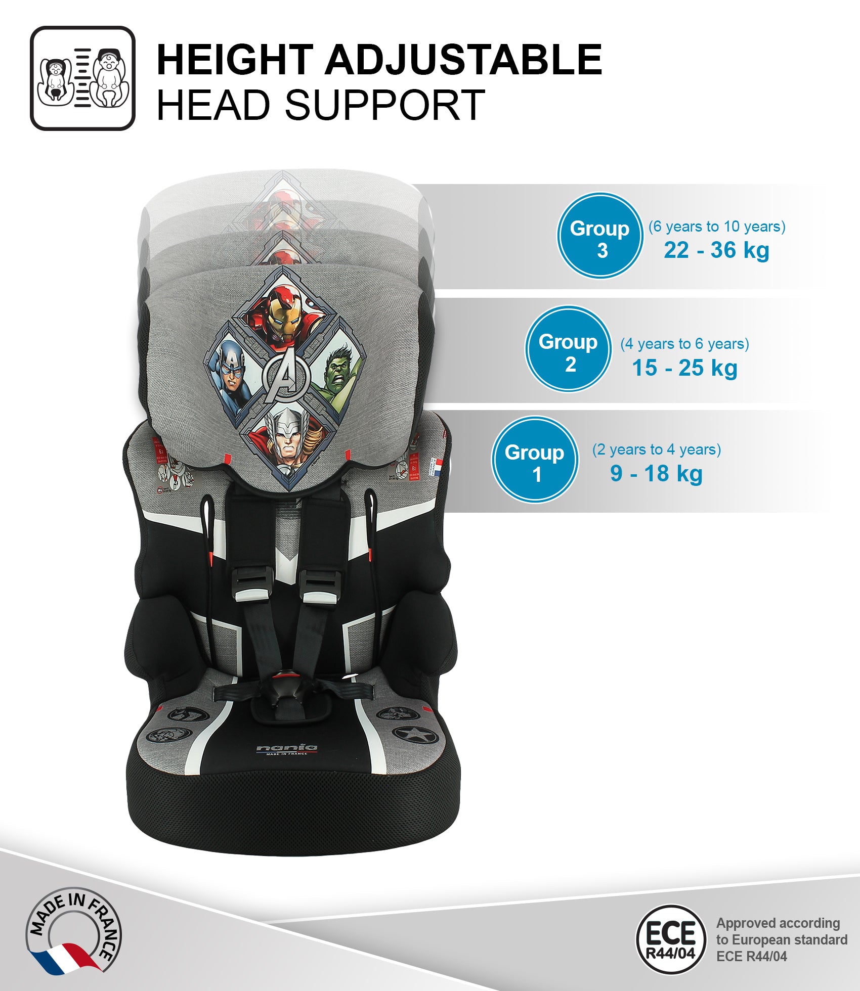 - HIGHEST LEVEL OF SAFETY: Manufactured, tested & certified in France according to ECE R44/04 standard. This product is applicable for children in the ECE group 1/2/3. Innovatively designed to provide protection for the child in the event of a side impact