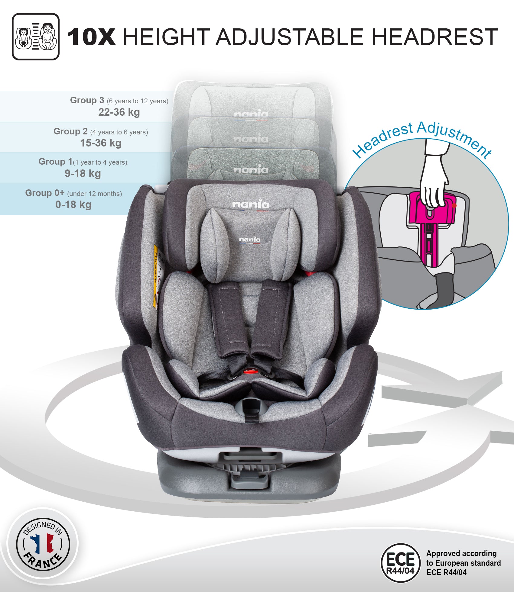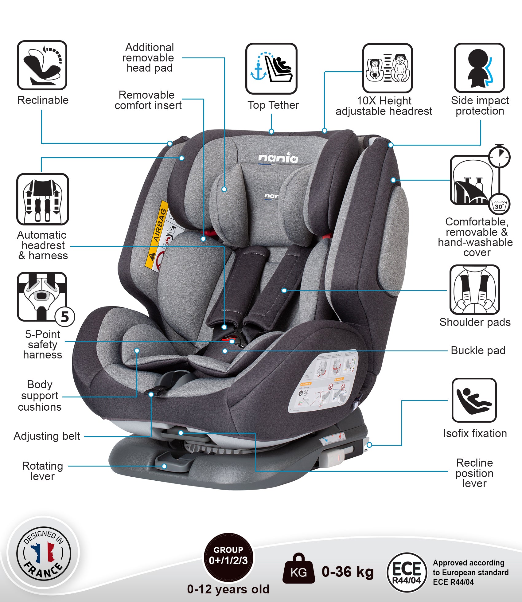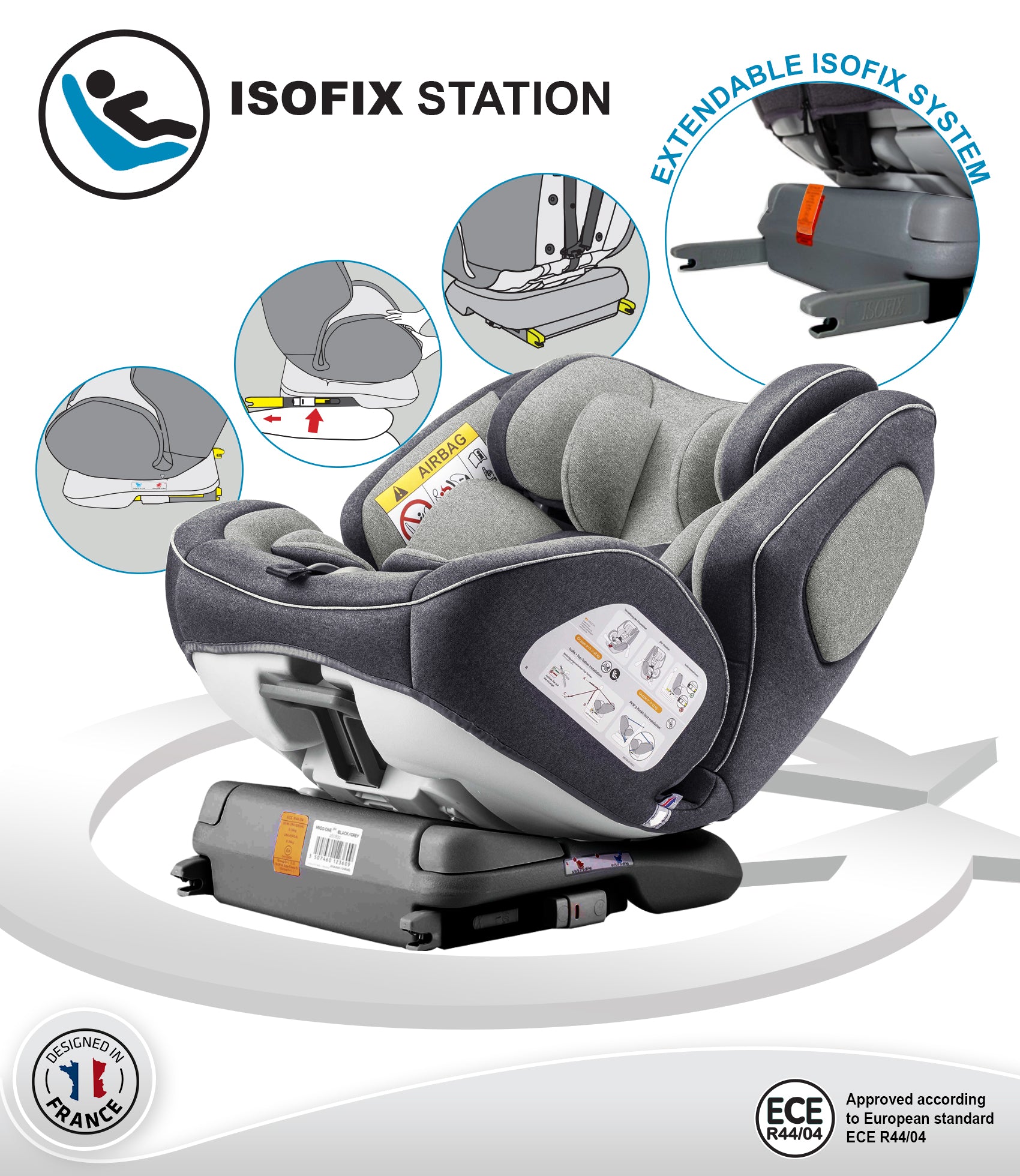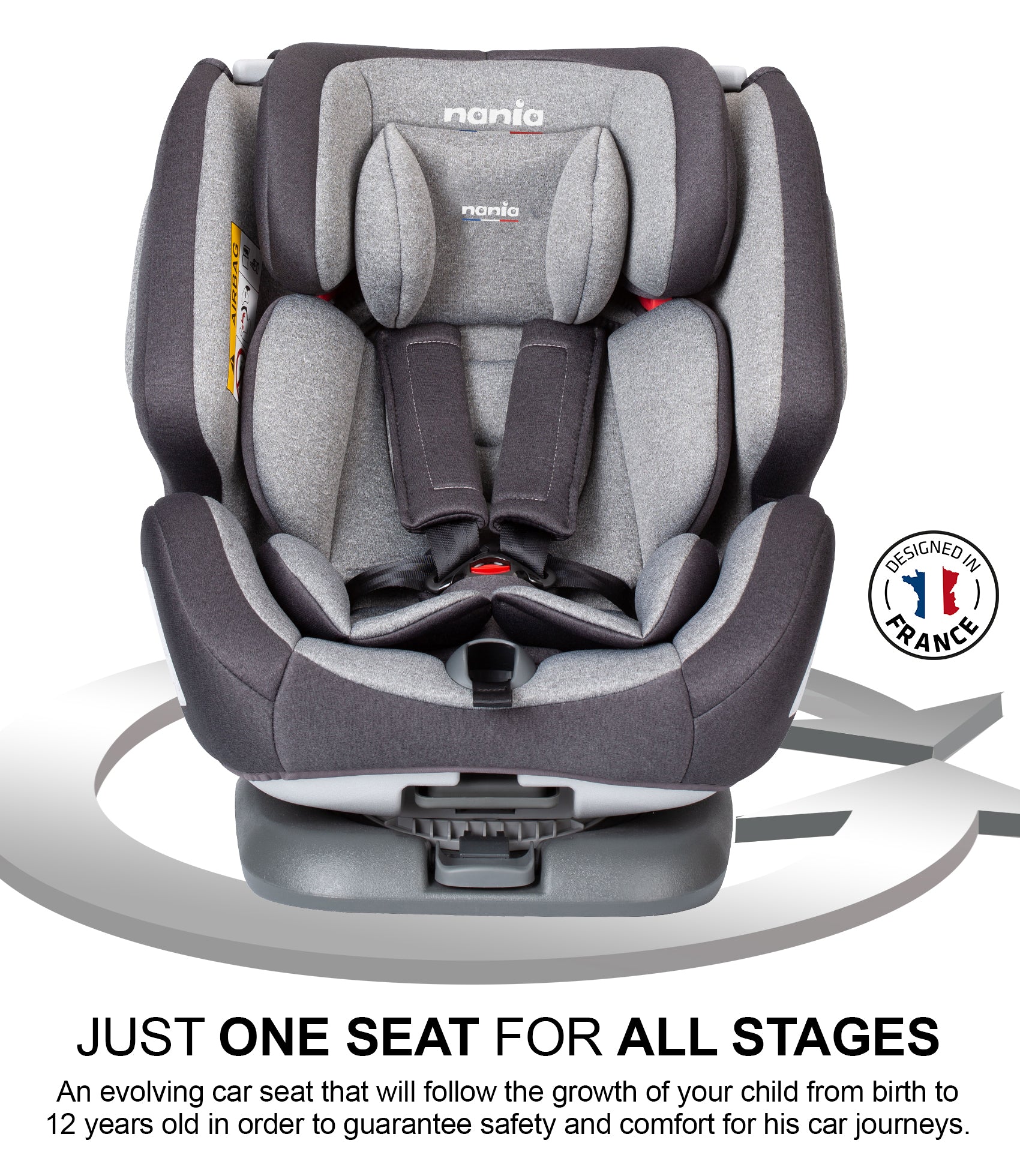 The ONE car seat is a seat with isofix fixation, approved according to the European standard ECE R44/04 in group 0+/1/2/3, i.e. for children from birth until the age of 12 (36kg). The ONE car seat is an evolutionary car seat, which will grow with your child while ensuring safety and comfort for all car journeys.