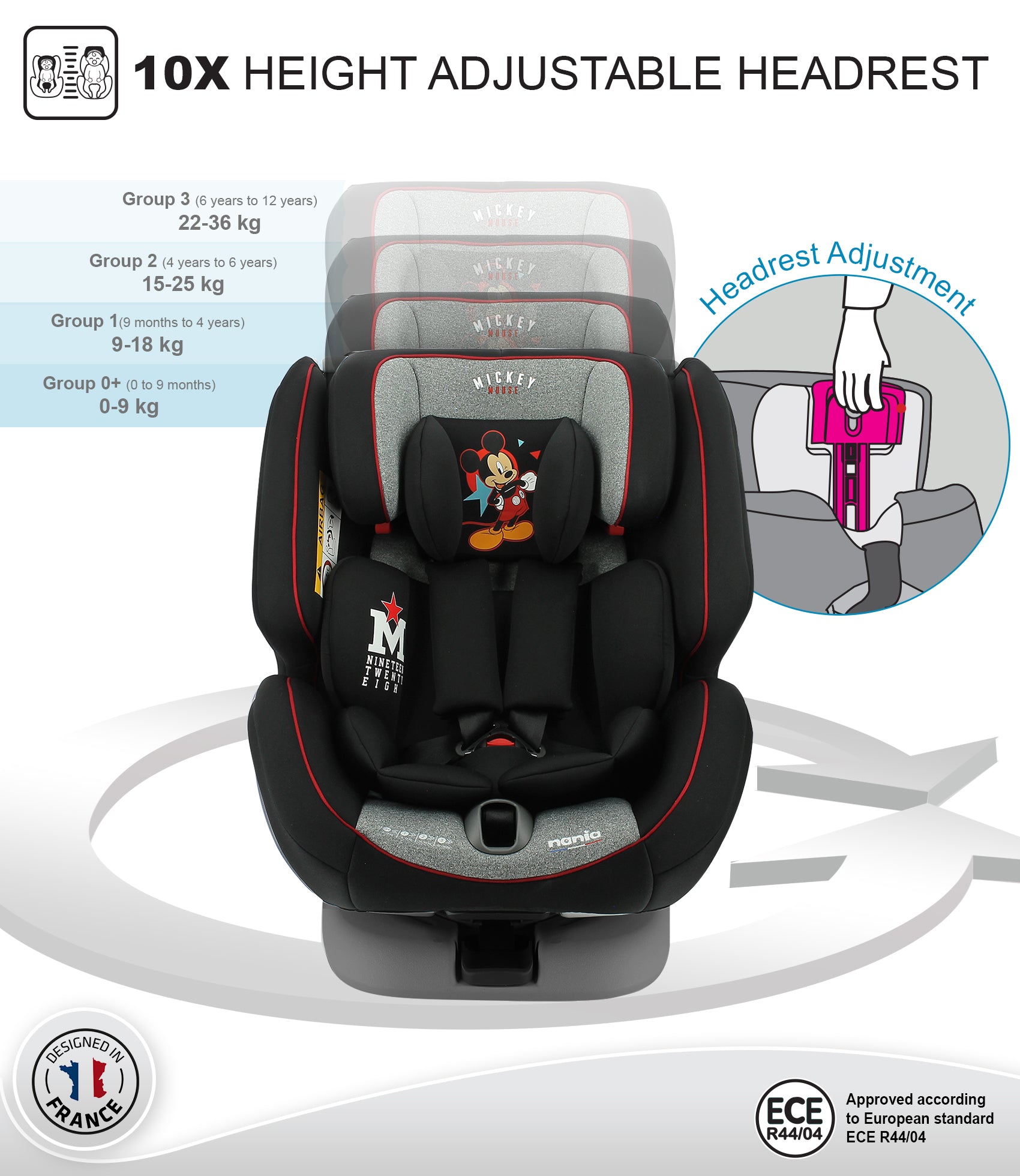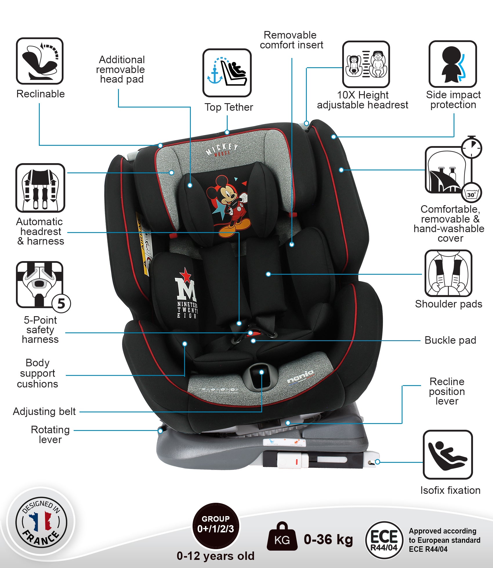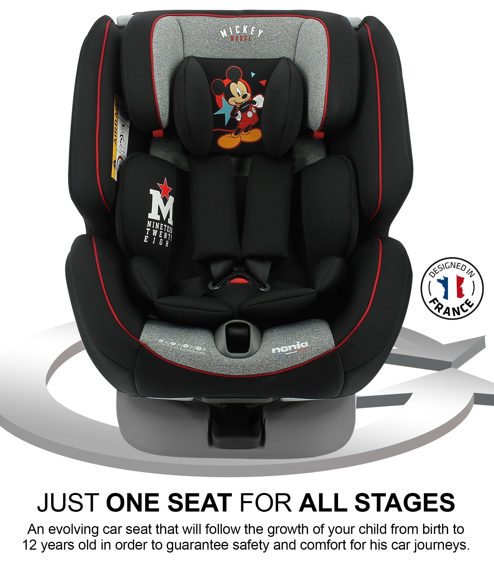 The ONE car seat is a seat with isofix fixation, approved according to the European standard ECE R44/04 in group 0+/1/2/3, i.e. for children from birth until the age of 12 (36kg). The ONE car seat is an evolutionary car seat, which will grow with your child while ensuring safety and comfort for all car journeys.