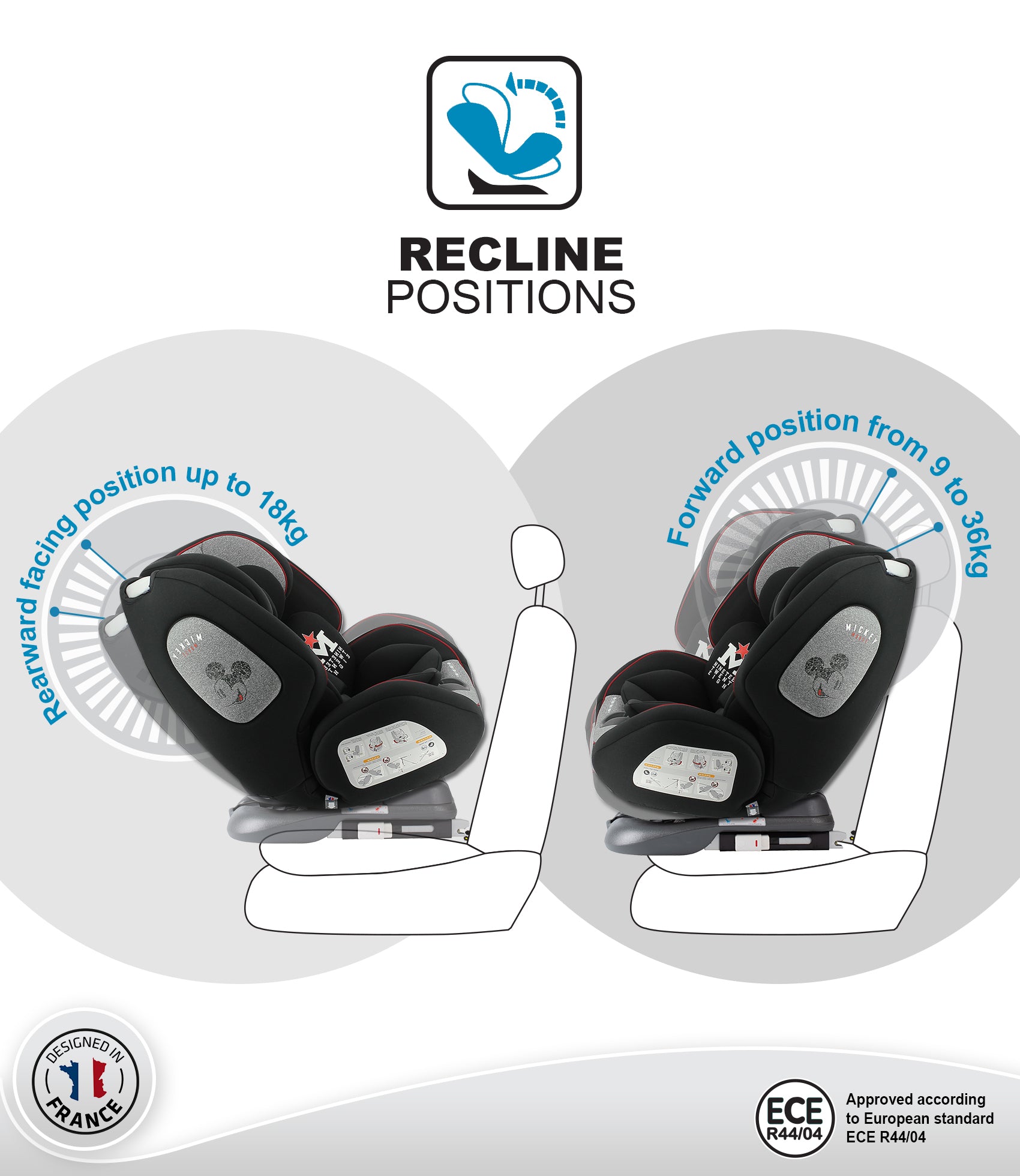 - COMFORT: The ONE 360° offers 3 recline positions (1 position for rearward facing and 2 positions for forward facing) so that your child is always comfortably seated during your journeys. Comfortable cover, padded shoulder straps with additional insert for pleasant car journeys that's easily removable and hand washable.