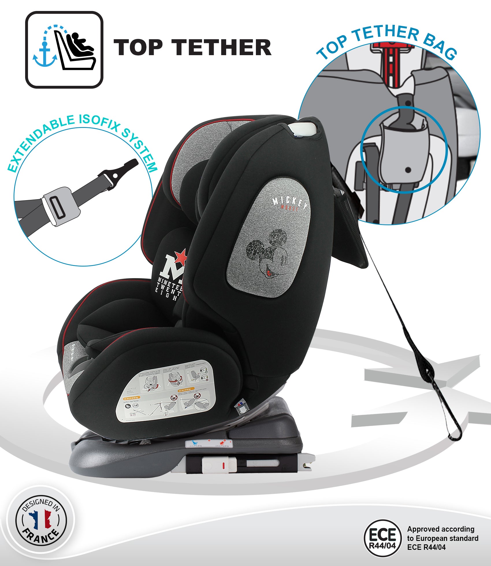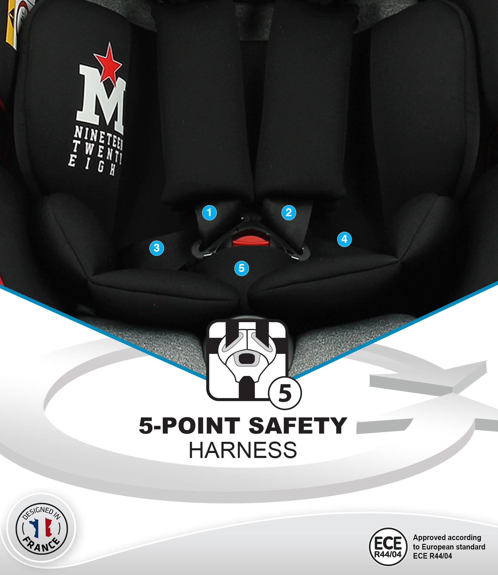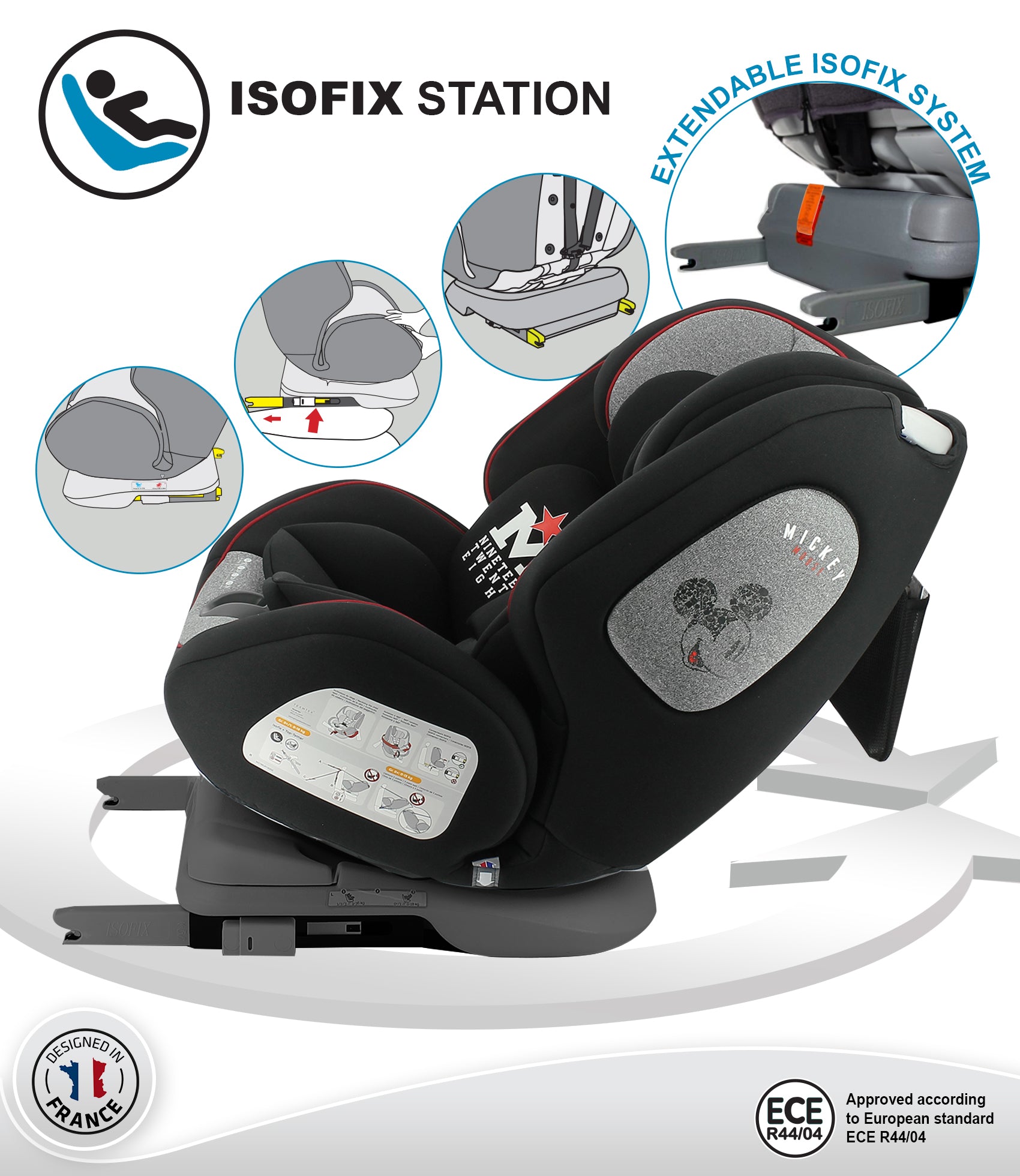 - HIGHEST LEVEL OF SAFETY: Tested & certified in France according to ECE R44/04 standard. This product is applicable for children in the ECE group 0+/1/2/3. Equipped with ISOFIX System. The car seat is fixed using the seat isofix bars which will clip onto the metal rings located under the bench. Availability of top tether for additional security.