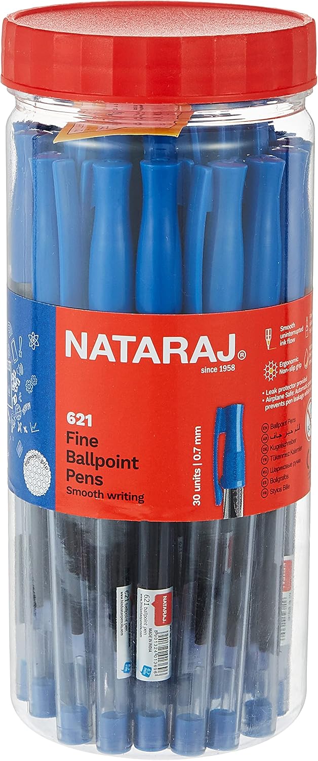 - 30 Blue Ink Nataraj 621 Fine Ball Pens