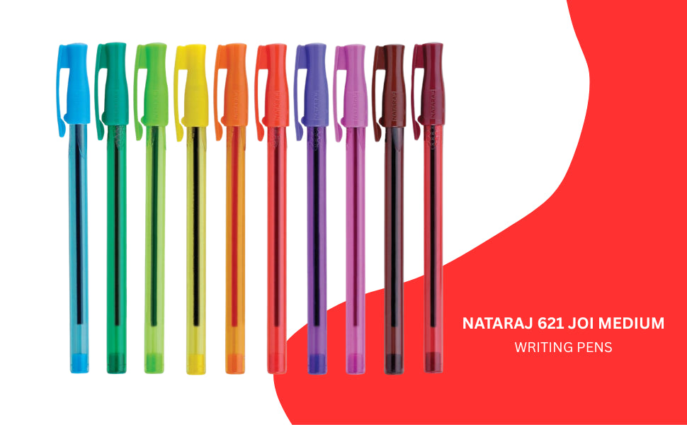 The Nataraj 621 Joi Medium 1mm Ball Point Pen set, featuring 10 vibrant ink shades, this pack is perfect for everyday tasks, note-taking, journaling, and creative expression. Each pen is designed with a medium 1mm tip that ensures smooth, consistent ink flow for a comfortable and enjoyable writing experience. The lightweight build and ergonomic grip make it easy to use for long periods without strain. Whether for school, office, or home use, these colorful pens combine reliability with a fun, expressive touch.