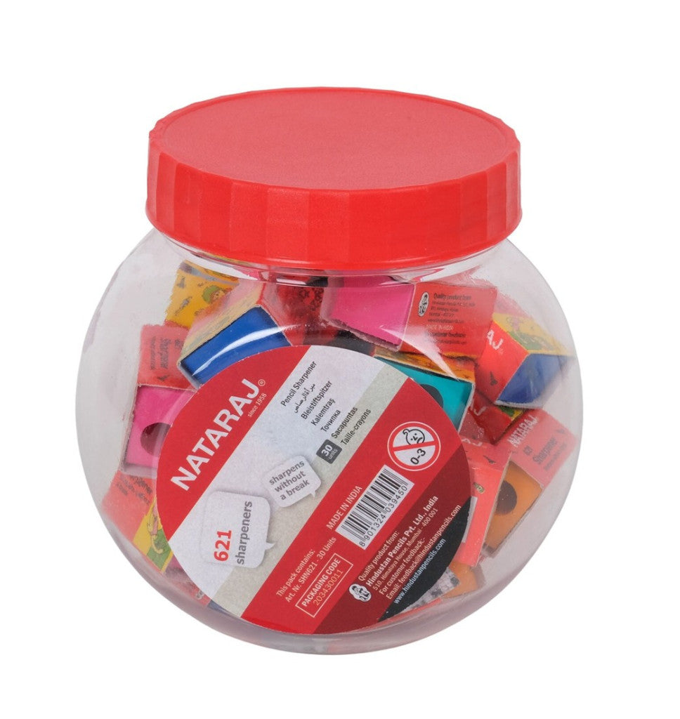 The Nataraj 621 Sharpener 30Pcs Jar is a bulk pack of classic, single-hole sharpeners, perfect for classrooms, offices, or large groups. Each sharpener is designed with a durable plastic body and a high-quality, anti-rust carbon steel blade that ensures a smooth and precise sharpening experience every time. The jar packaging is convenient for easy storage and distribution. This reliable sharpener is a staple for both standard and colored pencils.