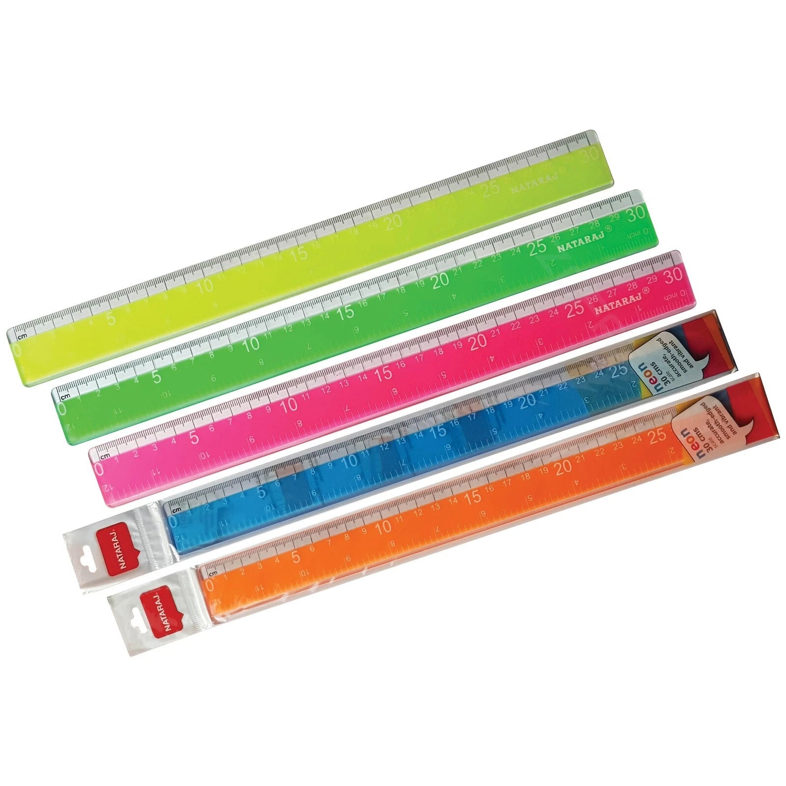 The Nataraj Fluorescent Ruler is a vibrant and functional measuring tool perfect for school, home, and office use. This 30cm ruler is made from a durable, transparent plastic that features a bright, fluorescent tint, adding a colorful touch to your stationery collection. The clear design allows you to easily see text and lines beneath the ruler for accurate placement and drawing. With its clear and precise markings, this ruler ensures you can achieve accurate measurements for all your projects.