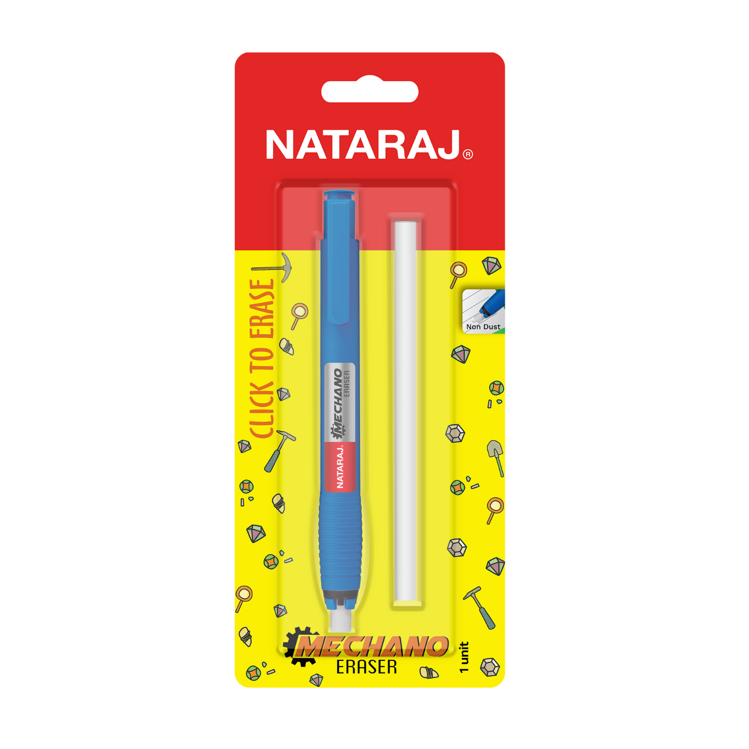 The Nataraj Mechano Cylindrical Eraser is an innovative and highly practical tool for precise erasing. Designed with a pen-like form factor, this mechanical eraser features a retractable mechanism that protects the eraser stick from damage and keeps it clean. This blister pack also includes an IPC (Indian Pencils & Crayons) eraser refill pack, ensuring the product's longevity and providing excellent value. The fine point of the cylindrical eraser is perfect for detailed work, making it a great choice for architects, artists, students, and professionals who require accuracy.