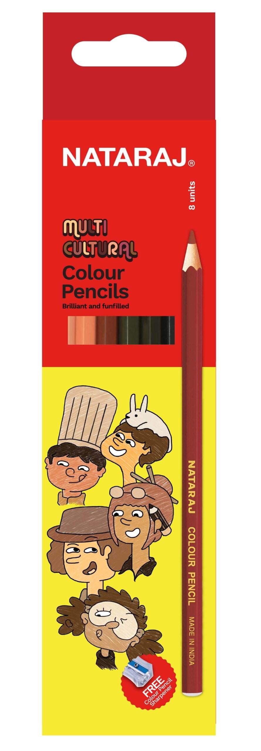 The Nataraj Multi Cultural Colour Pencil set is a thoughtful and inclusive collection designed to help children and artists represent people from different ethnicities in their artwork. This special pack includes 8 pencils in a range of skin tones, allowing for a more accurate and diverse representation. The set also comes with a free sharpener, providing a complete and ready-to-use kit for creating portraits and figures. These high-quality pencils are made with smooth, break-resistant lead, ensuring a rich and consistent color laydown.