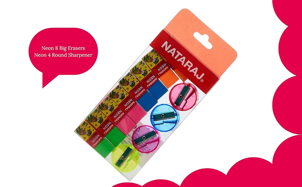 The Nataraj Neon 8 Big Eraser and 6 Round Sharpener Set combines functionality with flair. Designed for students, artists, and professionals alike, this set offers high-quality erasing and sharpening tools in eye-catching neon colors.