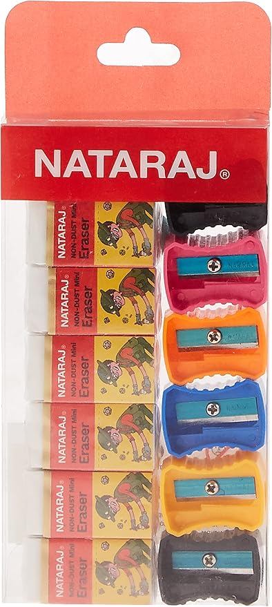 What's Inside Box: 4 x Nataraj Non-Dust Jumbo Erasers, 4 x Nataraj 621 Sharpeners