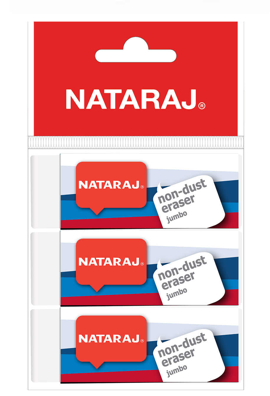 The Nataraj Non-Dust Jumbo Eraser pouch is a convenient and efficient solution for all your erasing needs. This pack contains three oversized erasers, ideal for correcting larger mistakes with ease. The non-dust formula is a standout feature, as it causes eraser residue to clump together, leaving your paper and desk clean and tidy after use. The erasers are phthalate-free and made from safe, high-quality materials, making them a reliable choice for students, artists, and office workers alike.