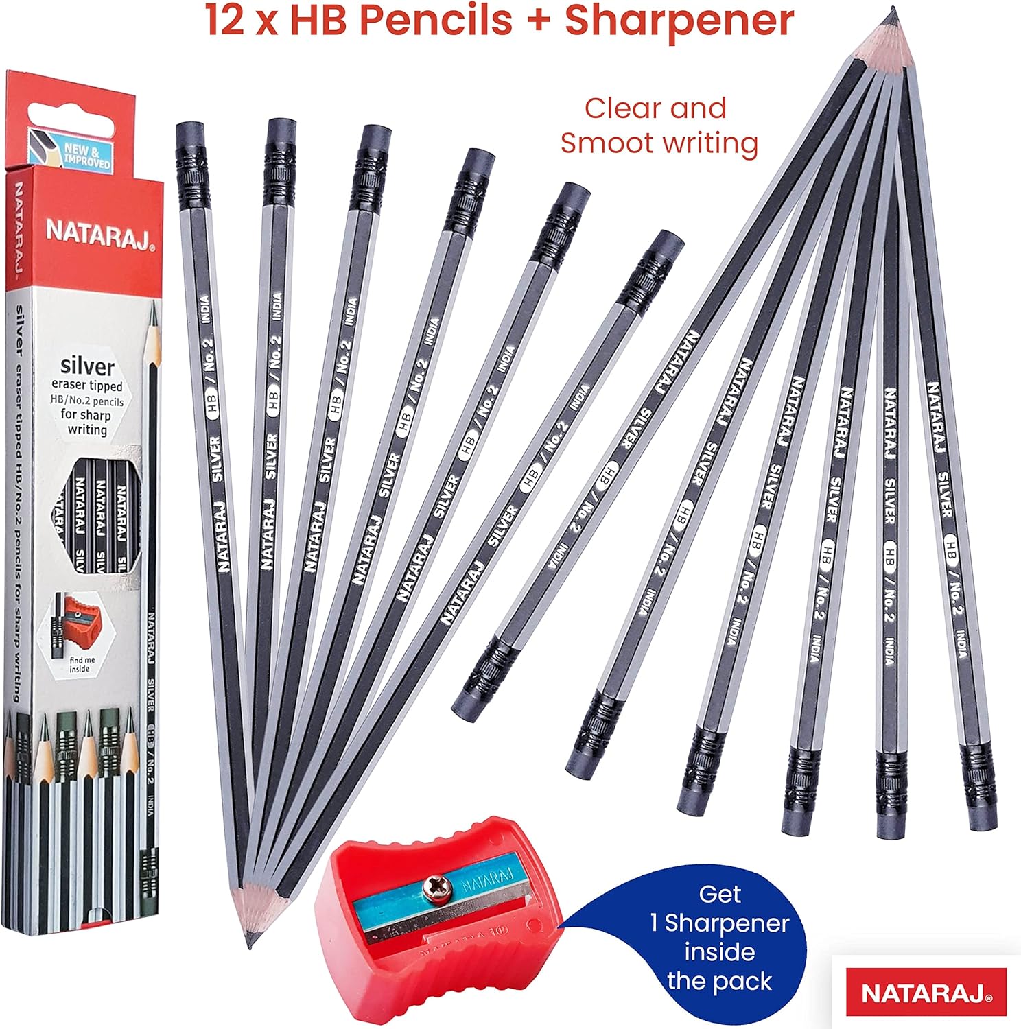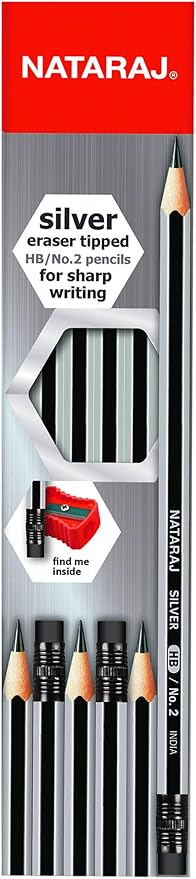 Nataraj Silver Hb Pencils comes with rubber and sharpner which are made from high quality materials. Pencils are break resistant and easy to sharpen with any quality sharpener. The bonded leads makes it resist breakages. Barrel body helps you to have optimum grip and control while writing. Compact design helps you to carry it easily without any hassle. It glides effortless over the paper. Perfect for writing, sketching and drawing purpose.