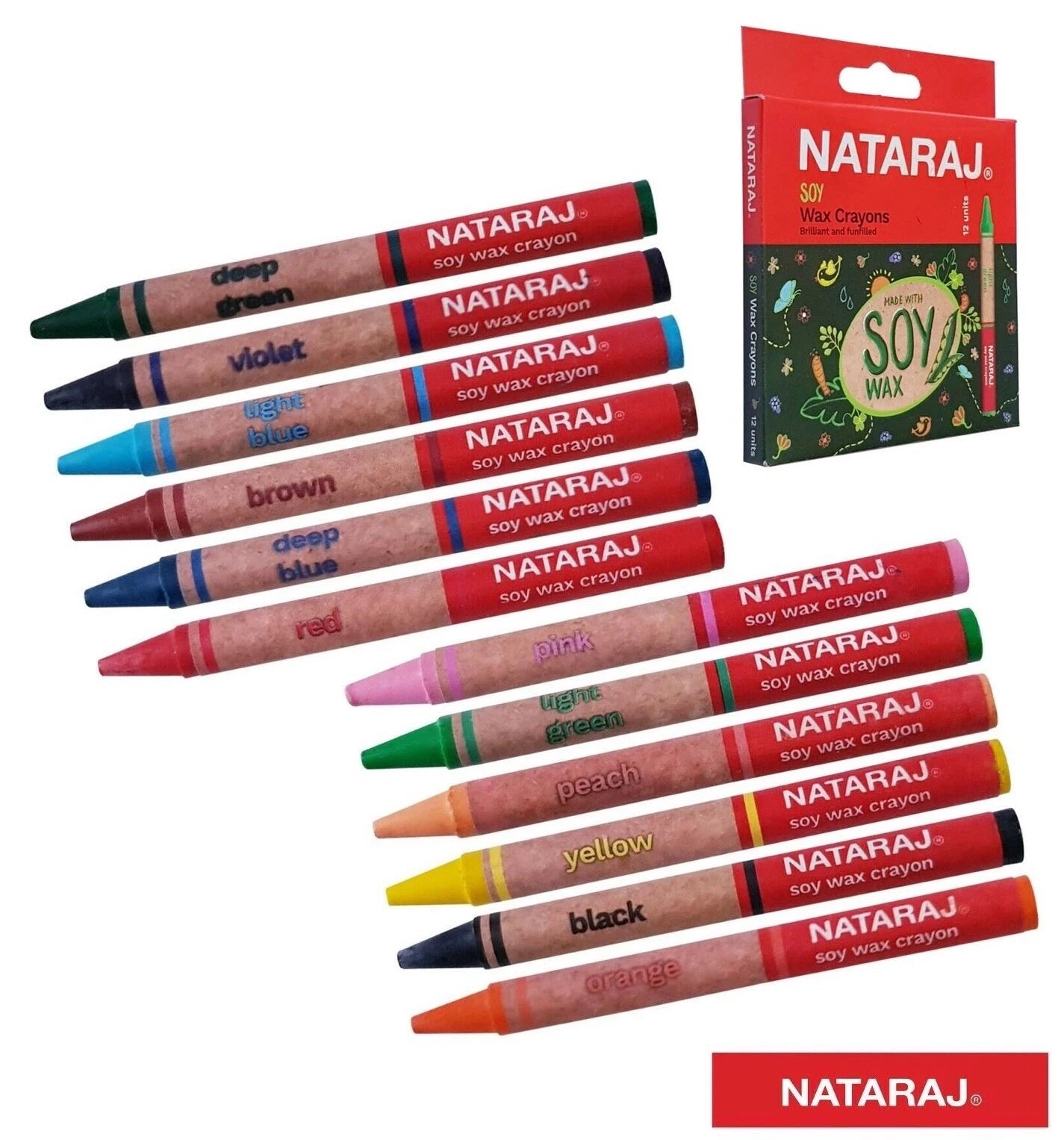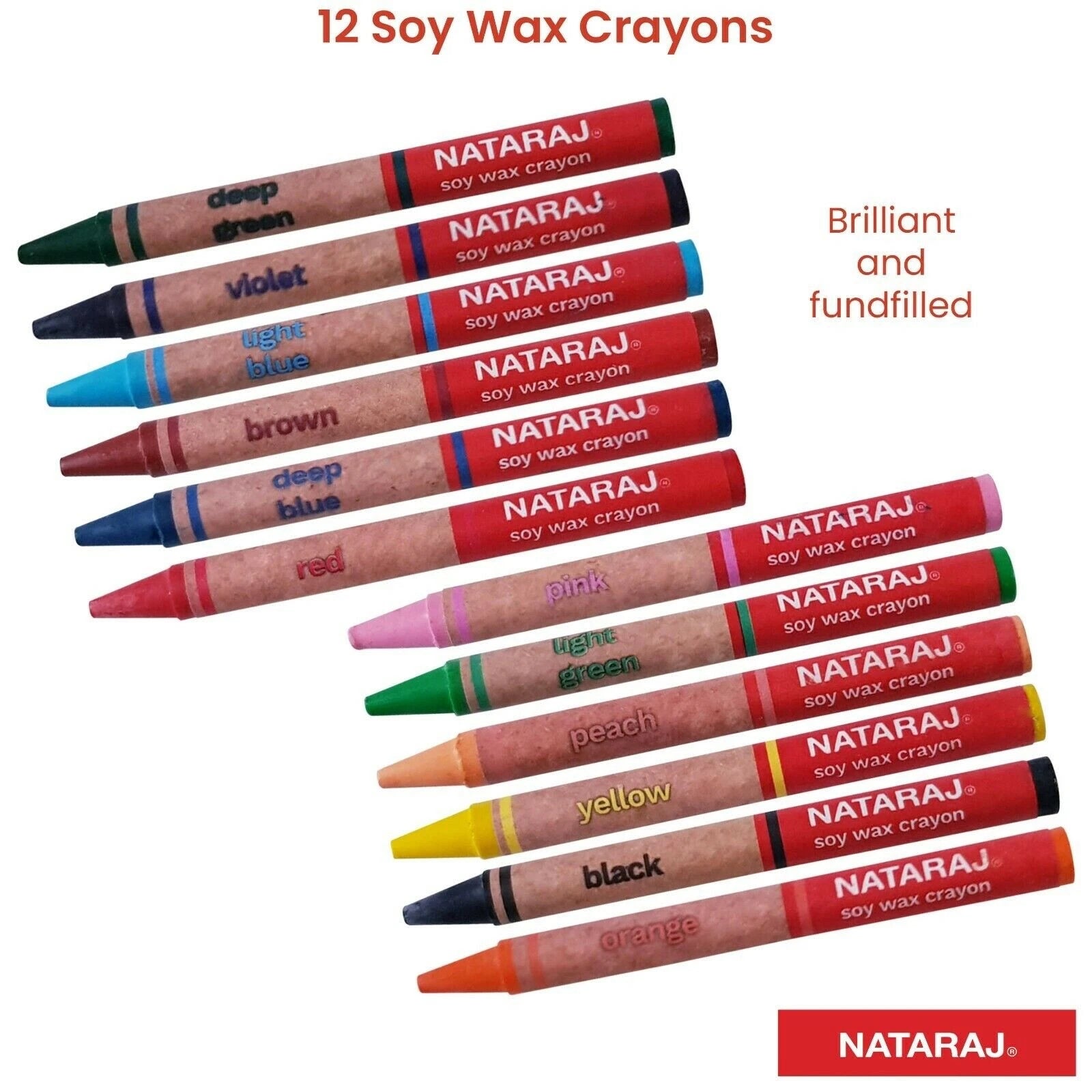 Nataraj Soy Wax Crayons are an innovative and eco-friendly choice for young children and artists. This pack includes 12 vibrant and bright colors, crafted from a natural soy wax base, making them a safer and more sustainable alternative to traditional paraffin wax crayons. The unique formula ensures a rich, smooth application, allowing for bright and consistent color laydown. The crayons are non-toxic and designed to be easy to hold, providing a comfortable and enjoyable creative experience.