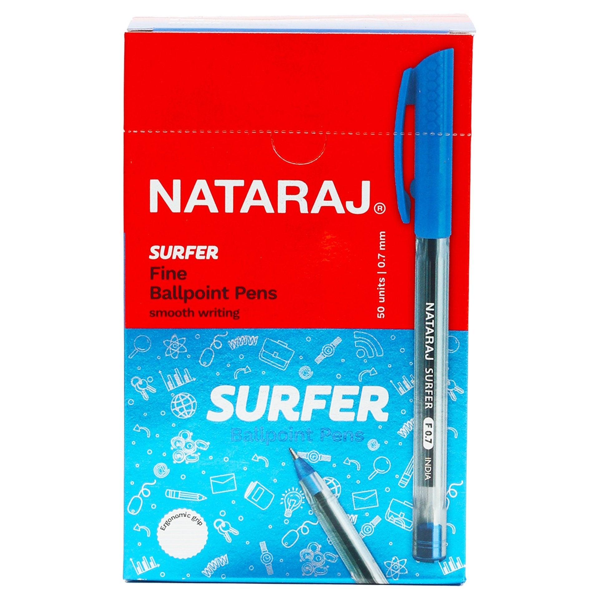 The Nataraj Surfer Fine Ball Pen is a sleek and reliable writing instrument that combines a modern design with smooth performance. This convenient bulk pack contains 50 pens with vibrant blue ink, making it an excellent and economical choice for classrooms, offices, and large groups. The pen features a fine 0.7mm tip that delivers a clean and precise line, ensuring a comfortable and skip-free writing experience every time. Its lightweight, stylish body and secure pocket clip make it both functional and easy to carry.