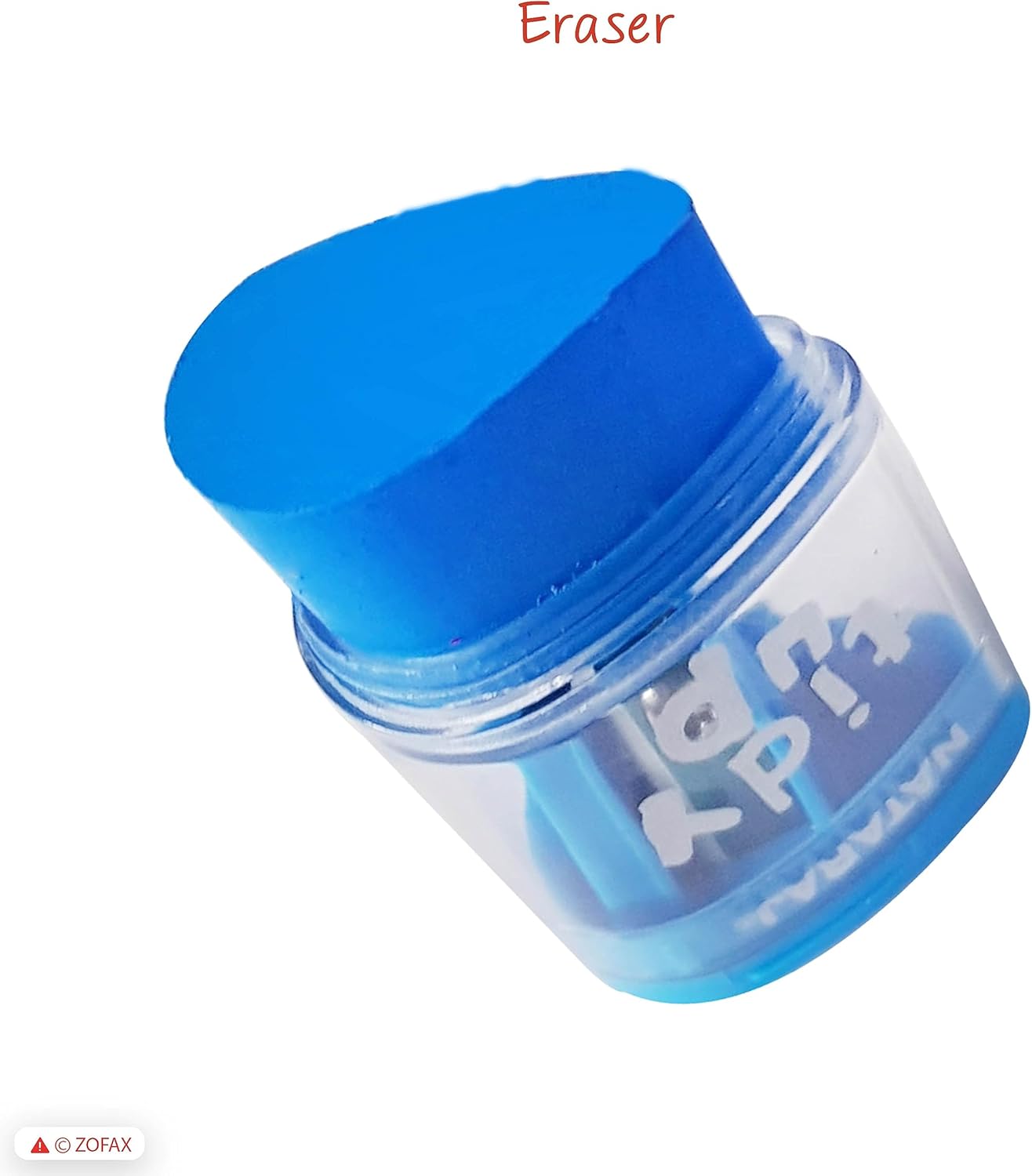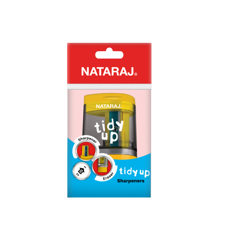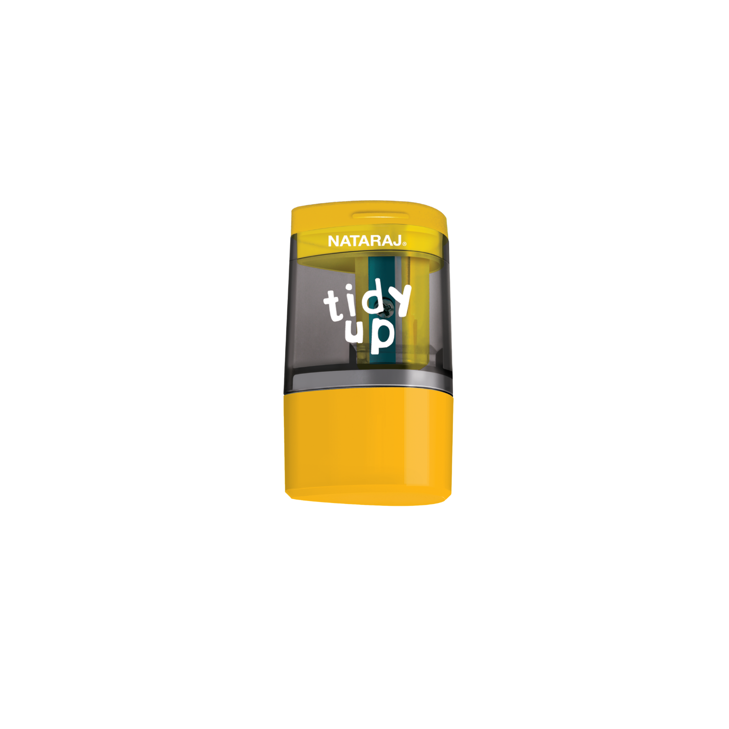 The Nataraj Tidy Up Sharpener & Eraser is a smart and convenient 2-in-1 stationery tool designed to keep your workspace clean. This single unit, which comes in an assorted range of colors, features a high-quality sharpener with a built-in waste collection chamber, ensuring that pencil shavings are neatly contained. On the other side, it has a non-dust eraser that leaves minimal residue, clumping it together for easy disposal. This compact and versatile tool is a must-have for students who want to keep their desks tidy.