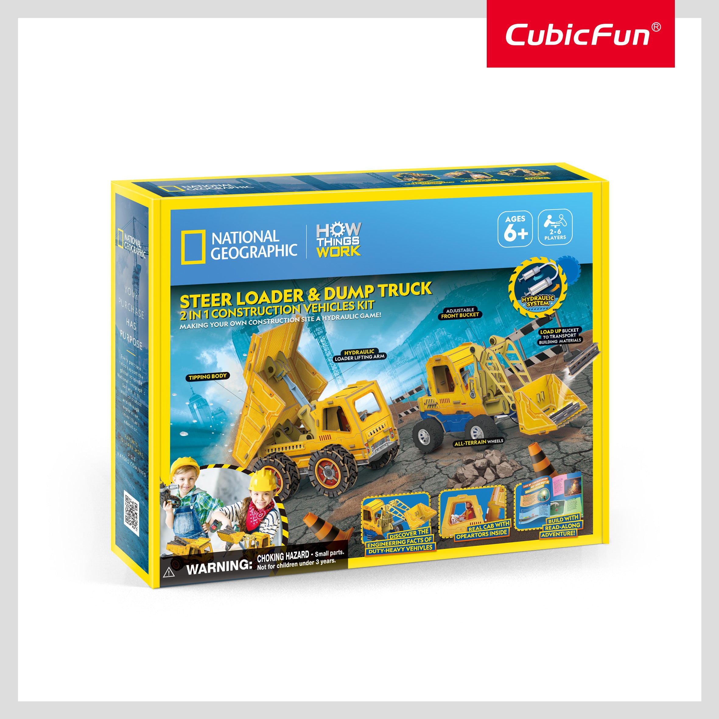 With this Steer Loader and Dump Truck kit, children can step into the role of a construction engineer and explore the mechanics of loading and hauling using the principles of levers and hydralics.